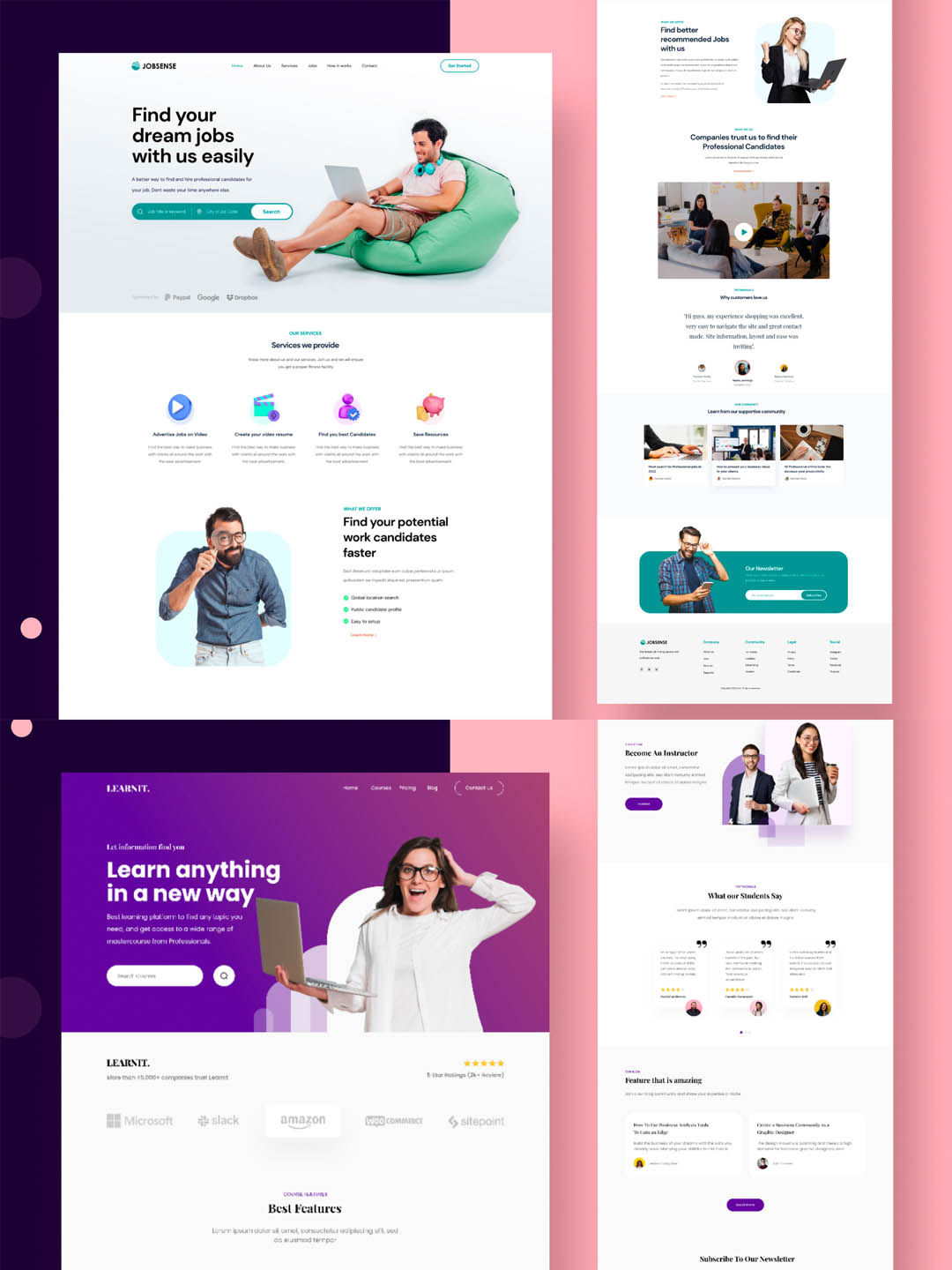 4 个具有不同风格和主题的简约和创意可定制登陆页面figma,xd源文件