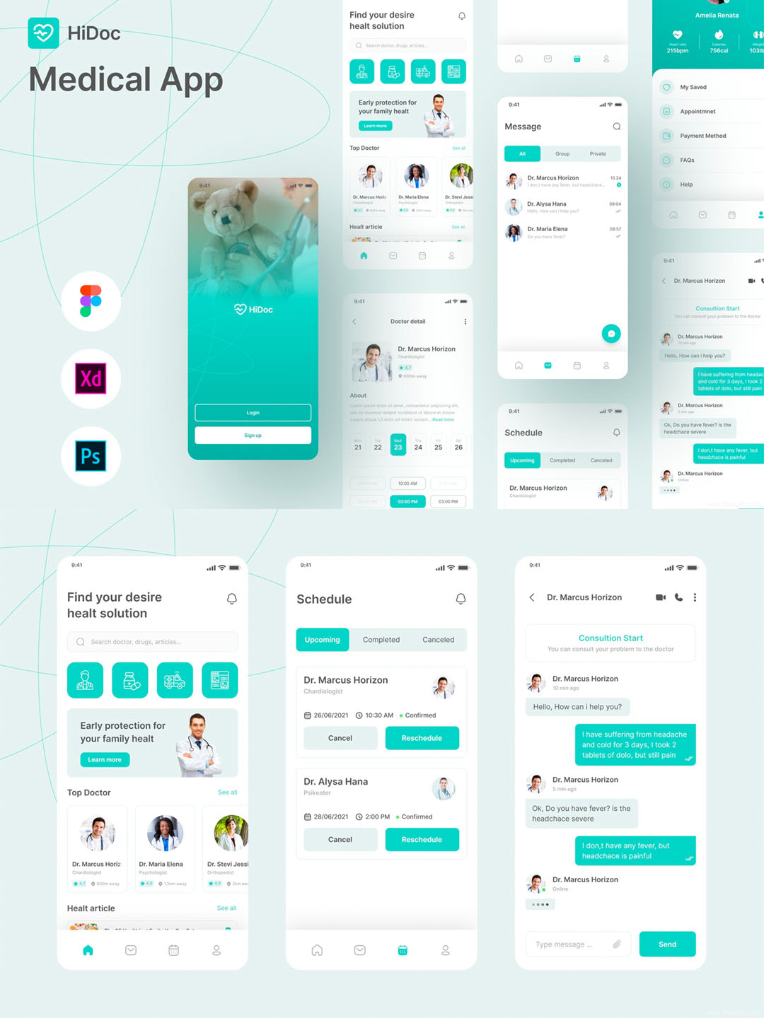 绿色小清新医疗APP、在线问诊APP UI资源素材 FIG,XD,PSD源文件