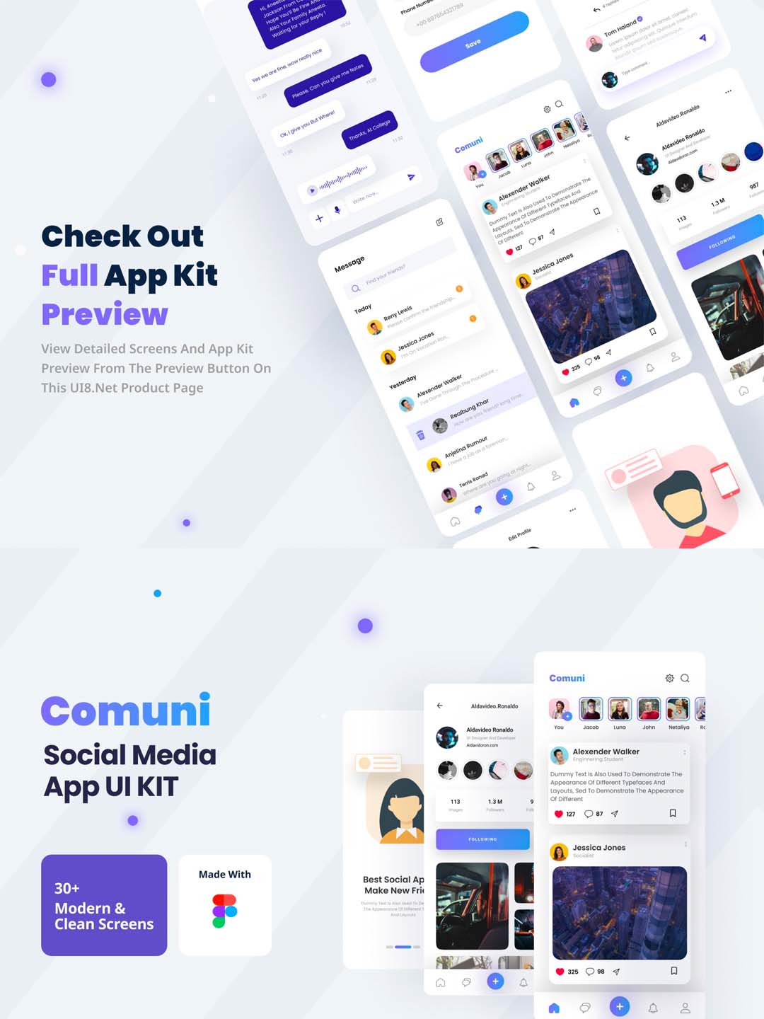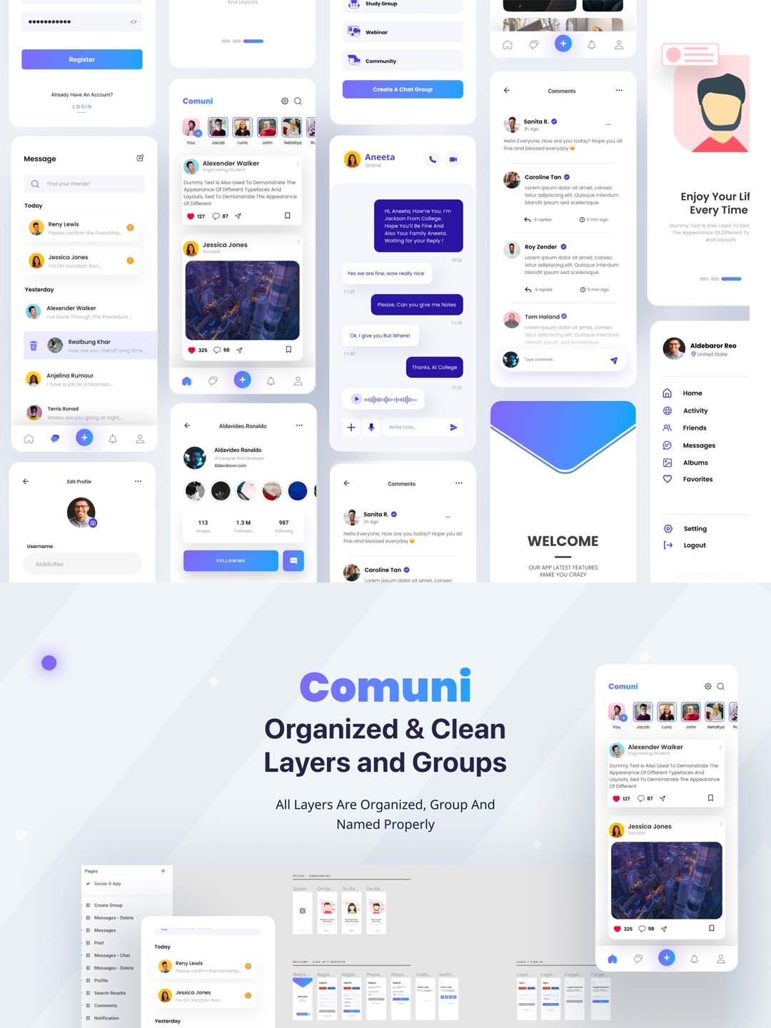 小清新轻量简约设计风格的社交app媒体类别UI资源、UI素材figma源文件