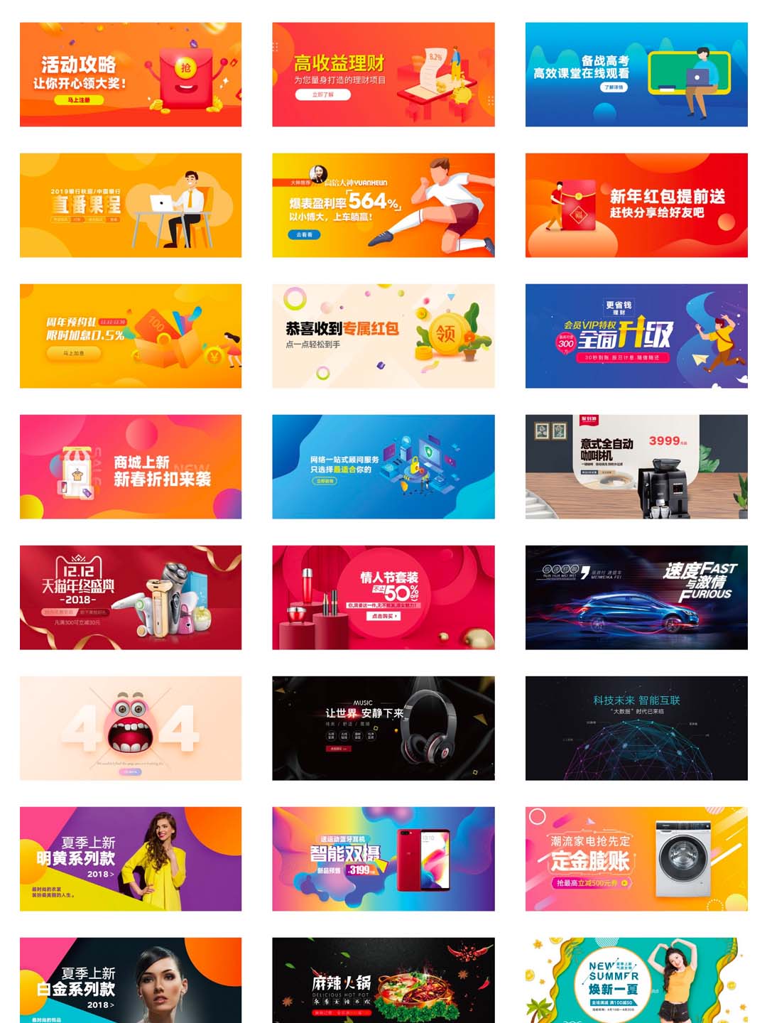 近百款运营banner设计psd下载,内有金融、电商、科技、家装等