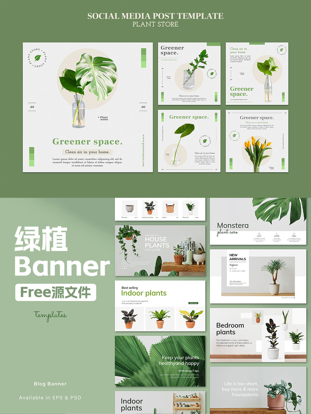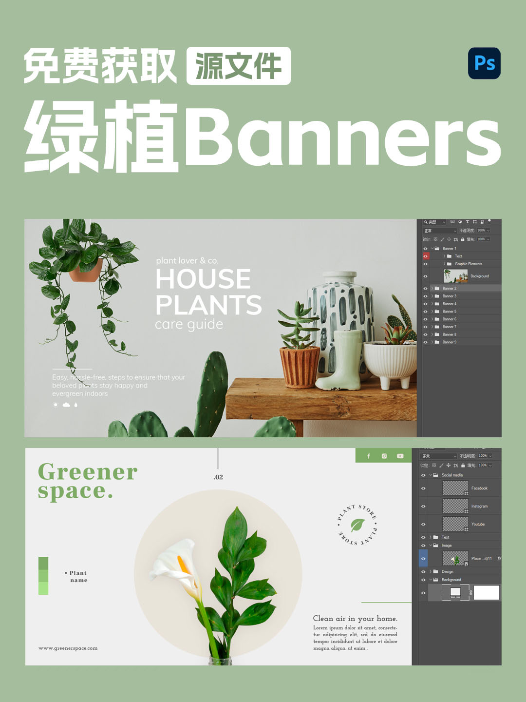 治愈绿植banner | 绿色系创意海报PSD源文件
