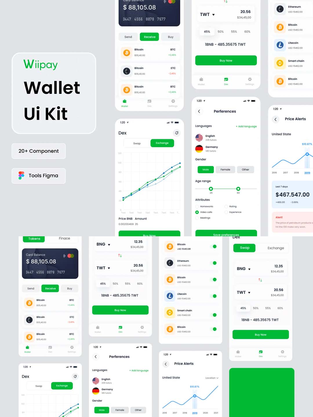 清新简约风格的加密区块链钱包应用,币圈交易市场app ui资源素材figma源文件