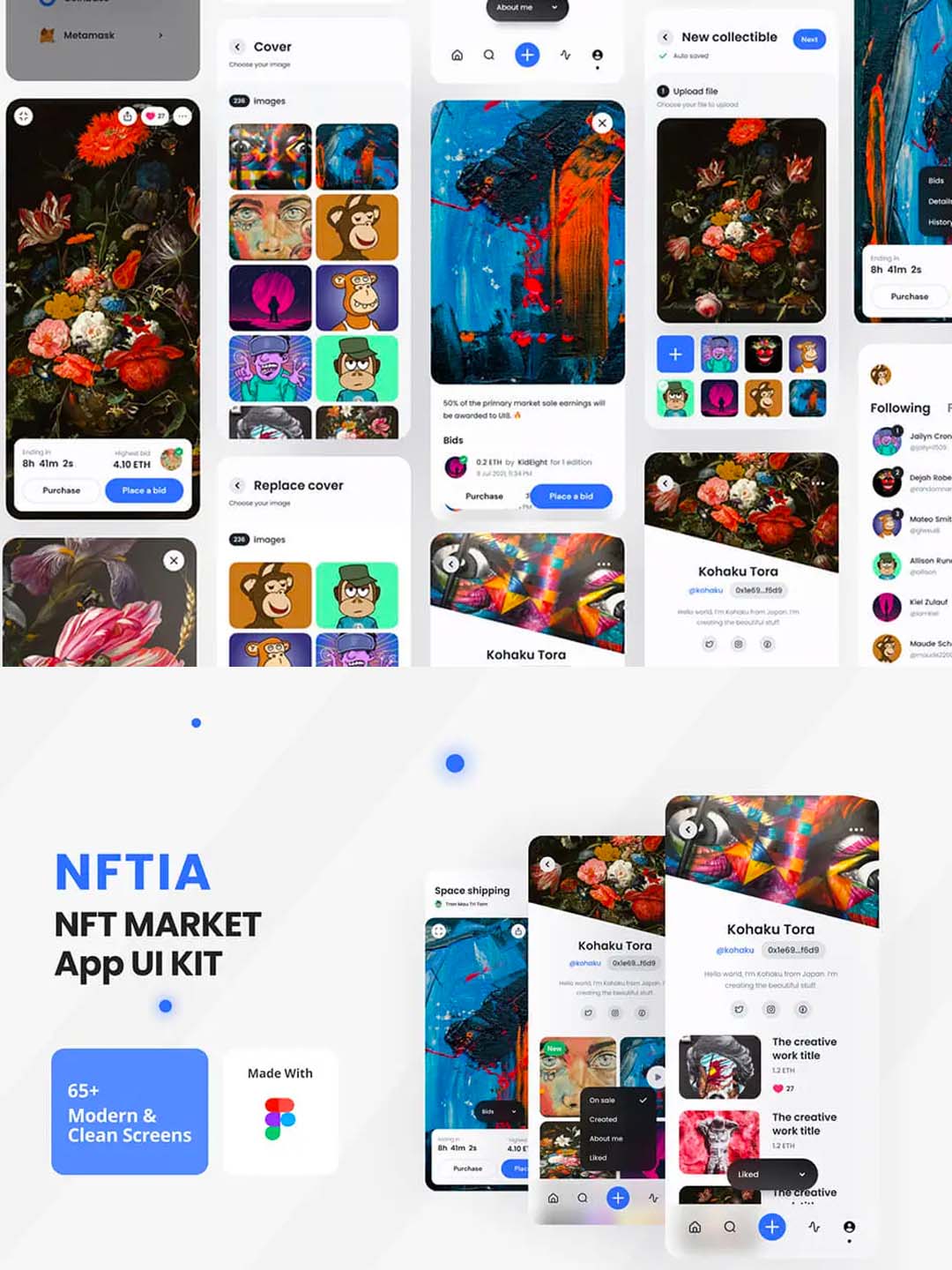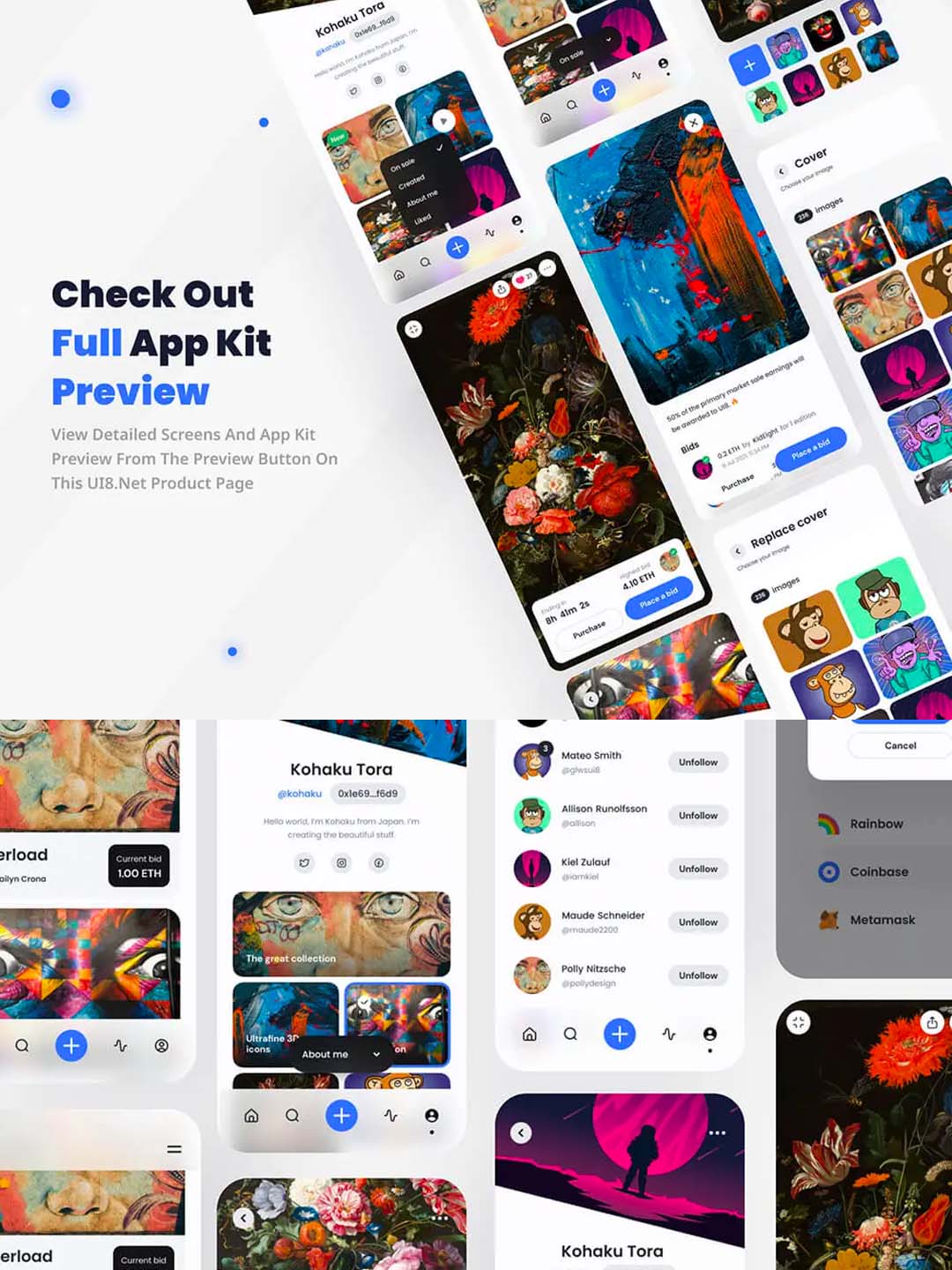 最新NFT平台市场App UI设计UI资源素材套件figma源文件