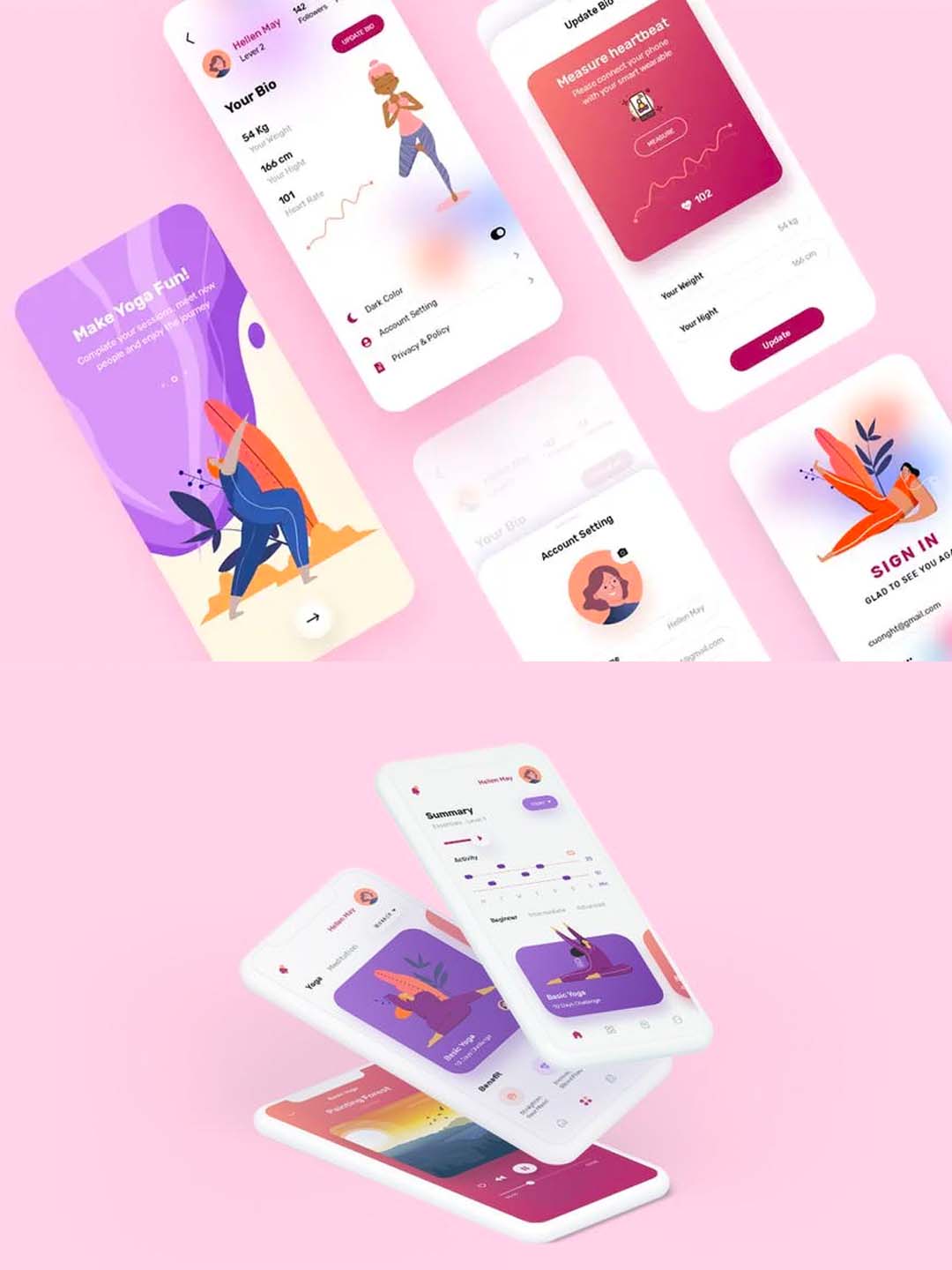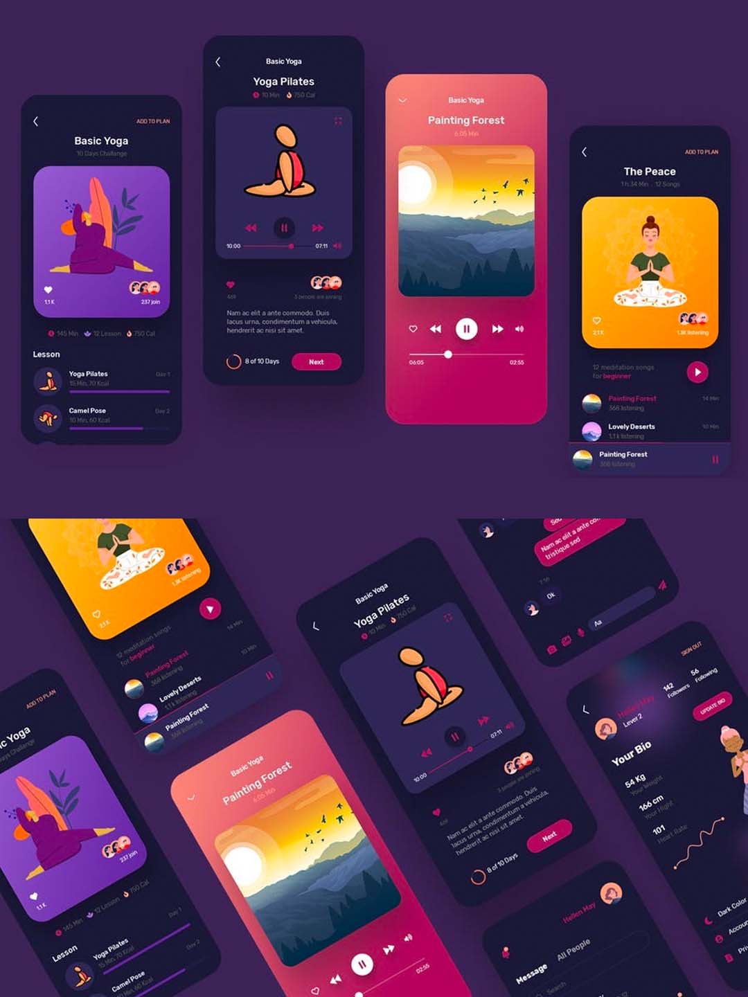 清新简约的健身相关应用瑜伽与冥想移动App应用程序UX/UI设计模板xd,psd源文件