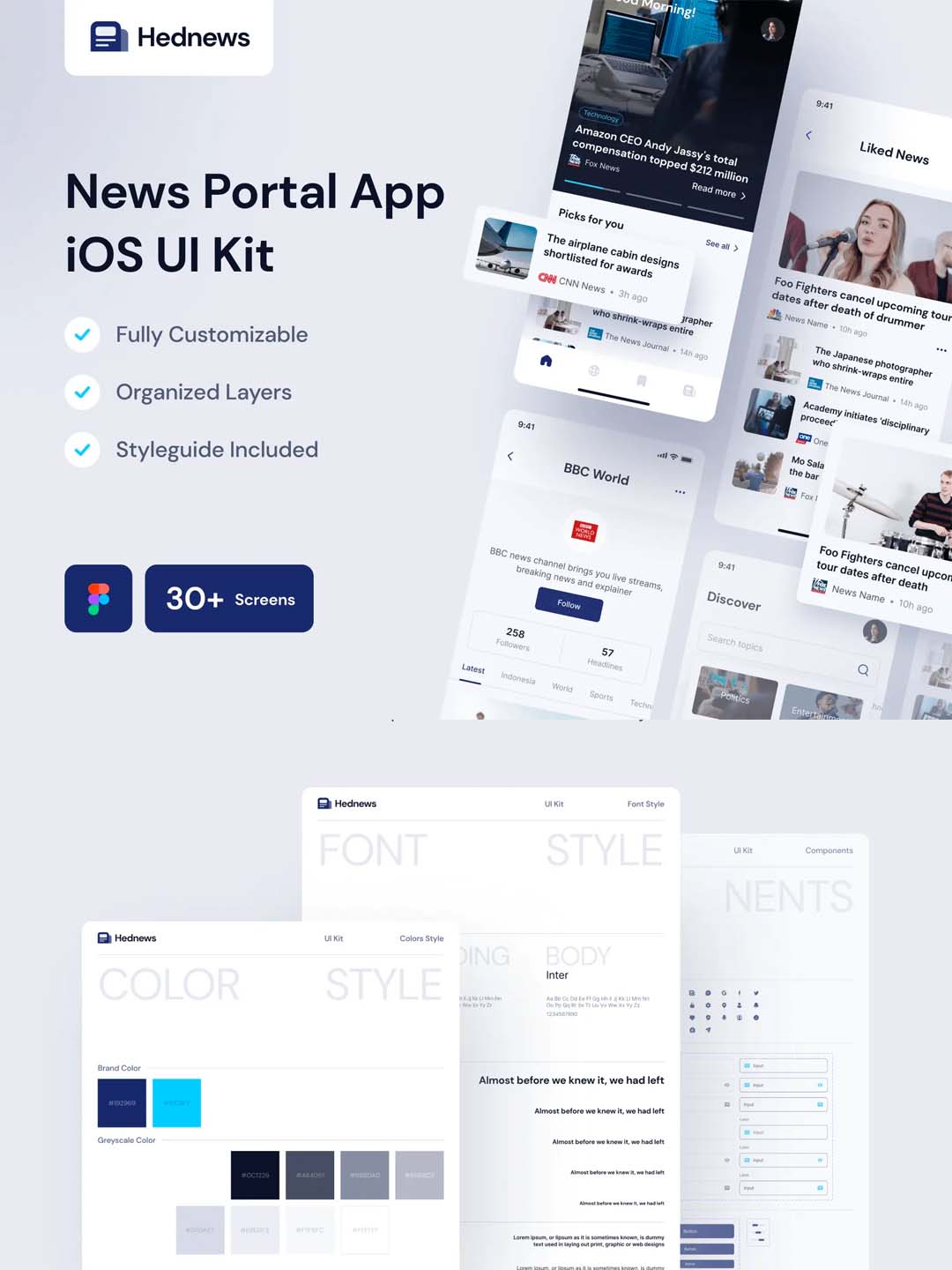 新闻门户App、资讯App应用程序iOS UI套件、UI资源素材figma源文件