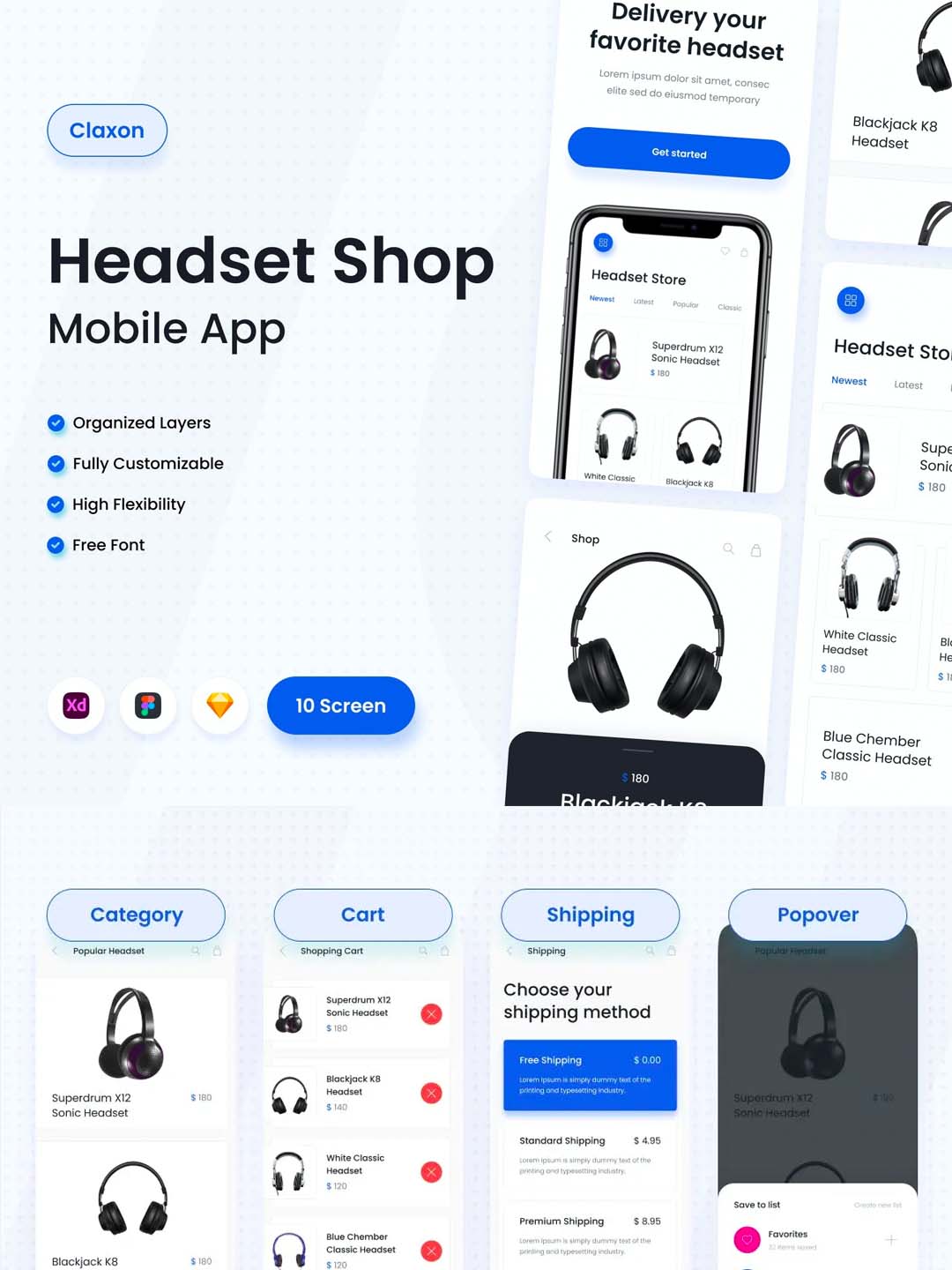 耳机商店App移动应用UI设计套件,含 FIG,SKETCH,XD三套UI资源素材下载