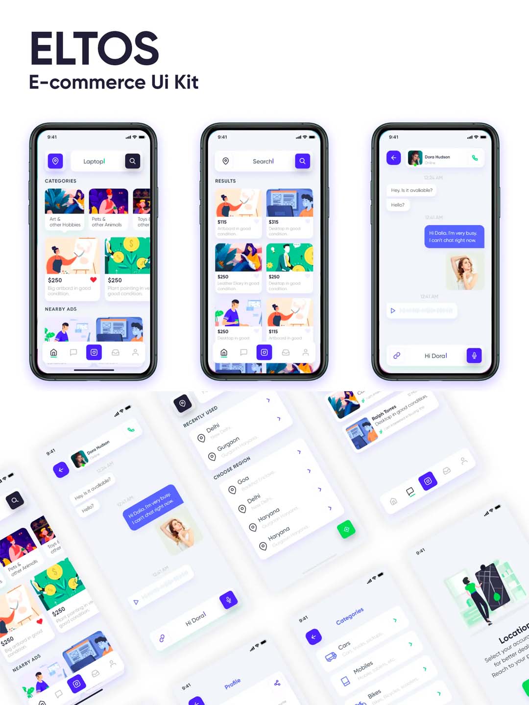 最新精美电商app UI资源素材xd源文件下载,小清新风格电商UI kit设计套件