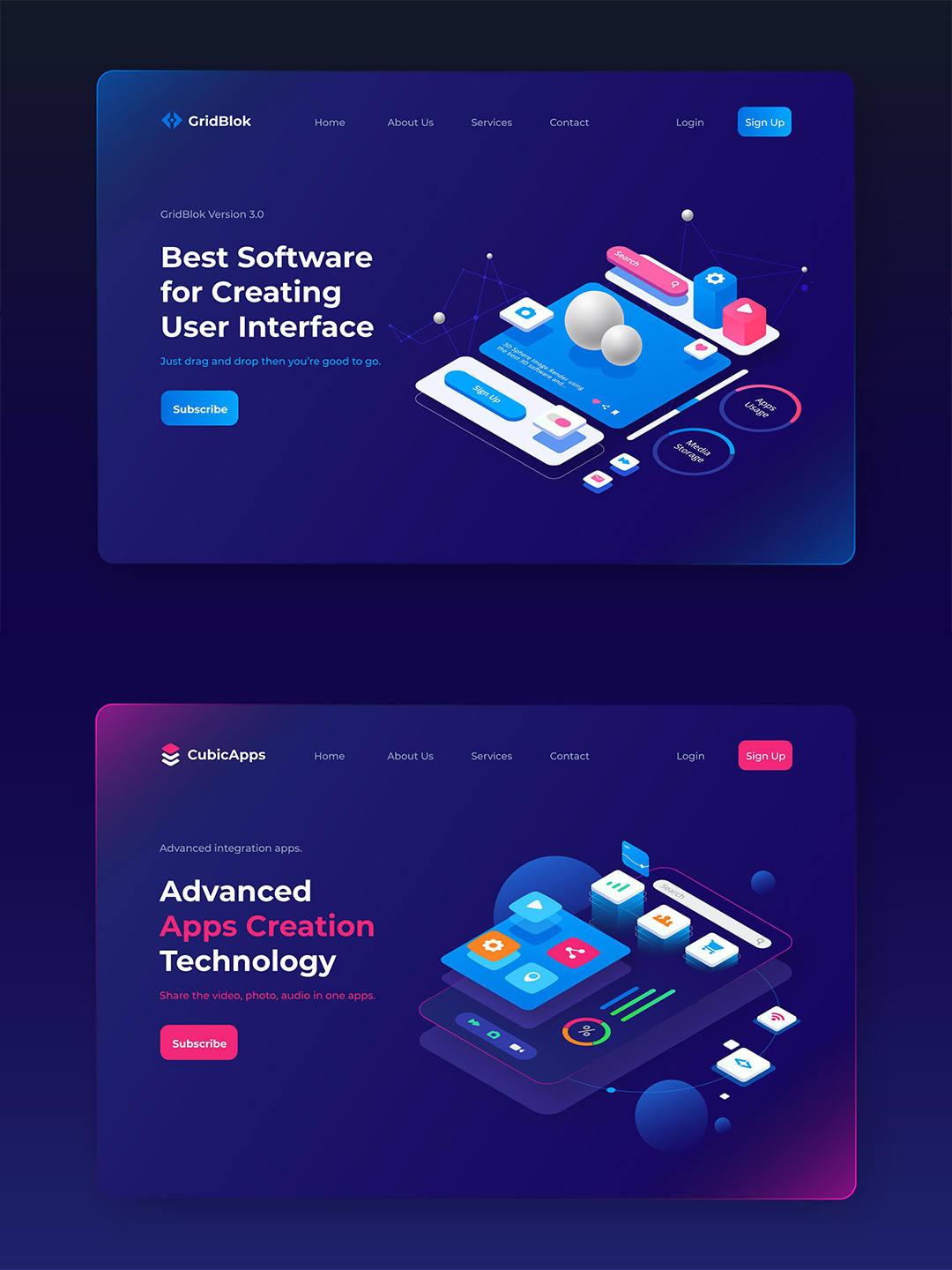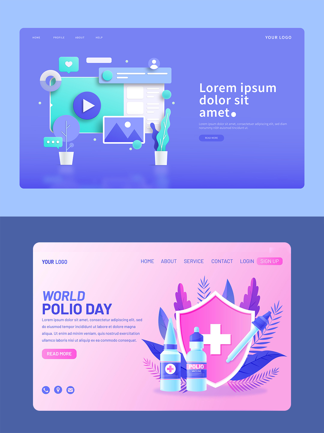 一组3D插画风格网页页面,含AI&esp格式的源文件