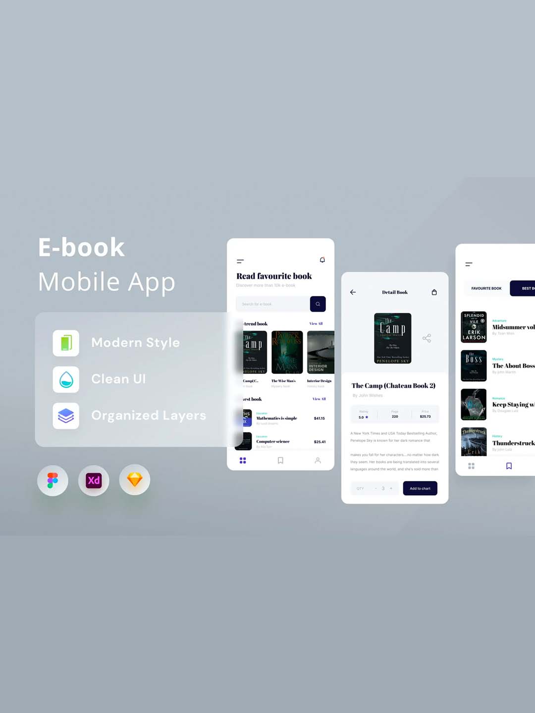小清新风格在线阅读APP手机页面UI/UX套件FIG,SKETCH,XD源文件