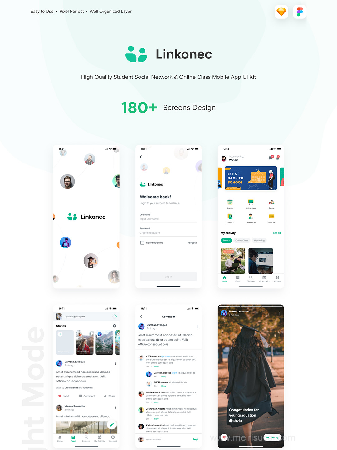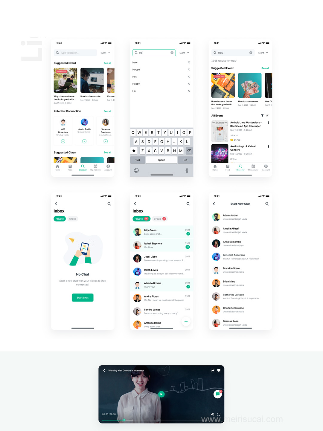 一套适合大学生社交加在线教育的移动APP应用UI资源素材fig、sketch源文件