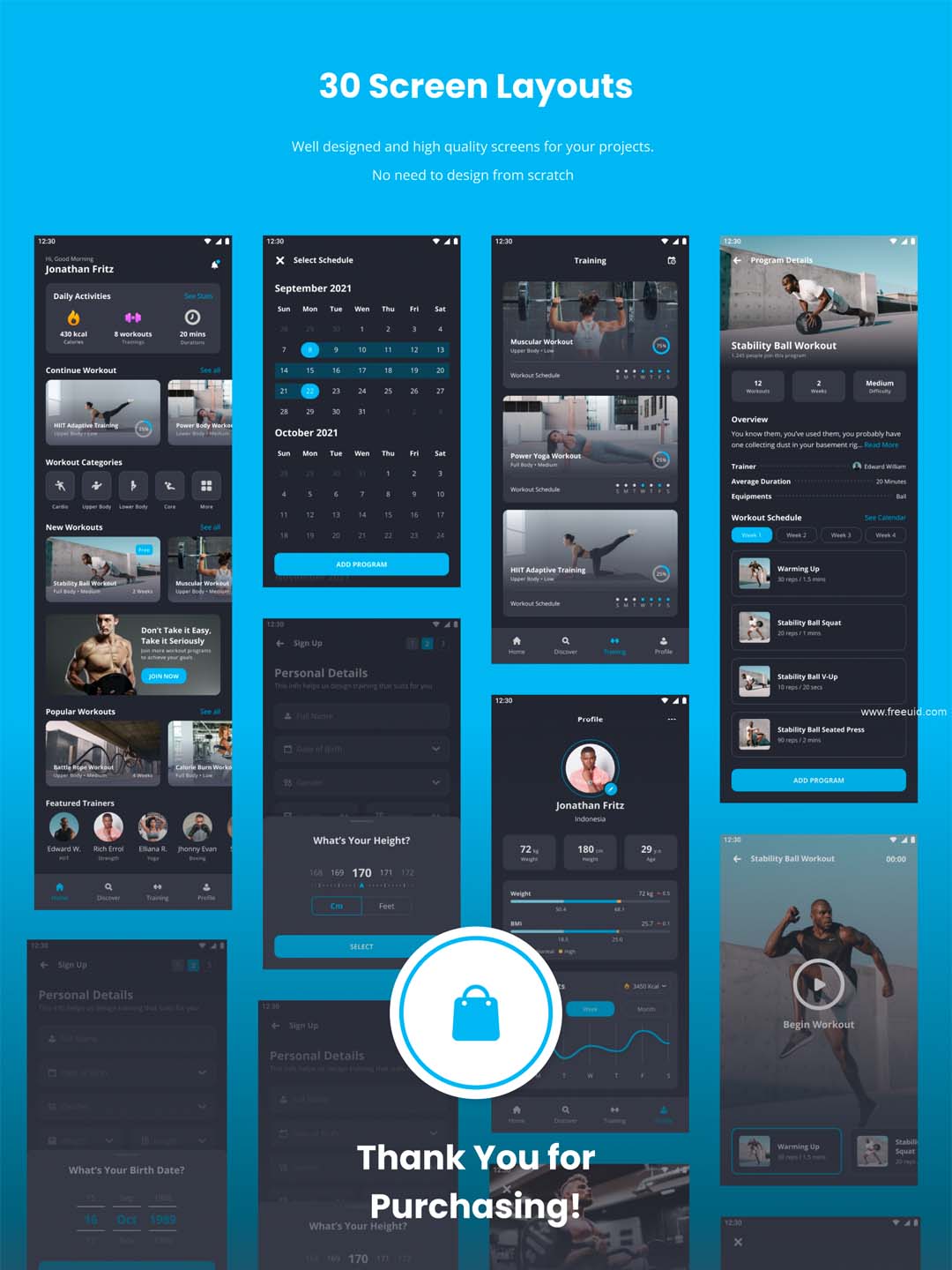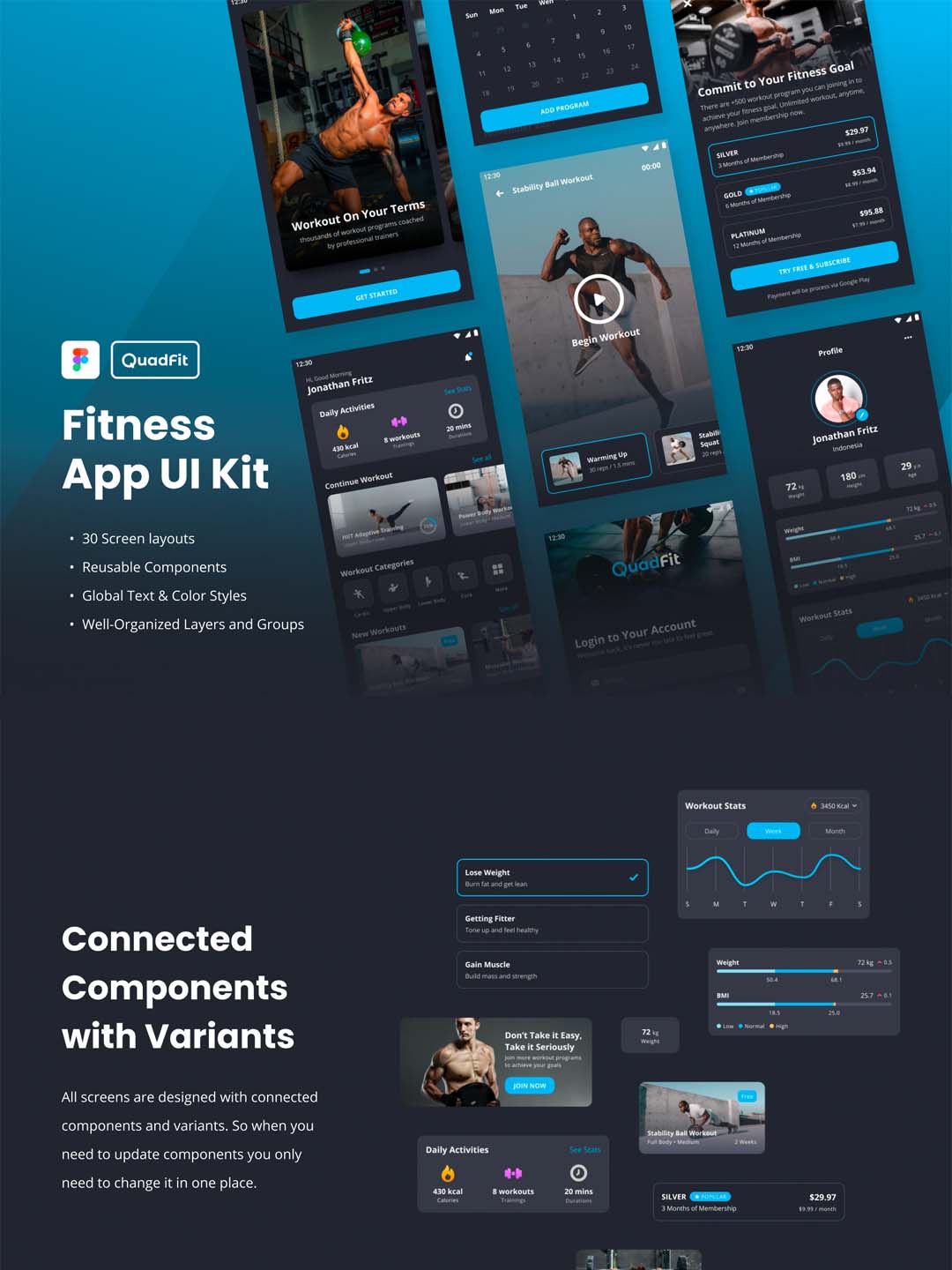 暗色风运动健身APP UI界面设计资源,健身应用UI素材figma源文件