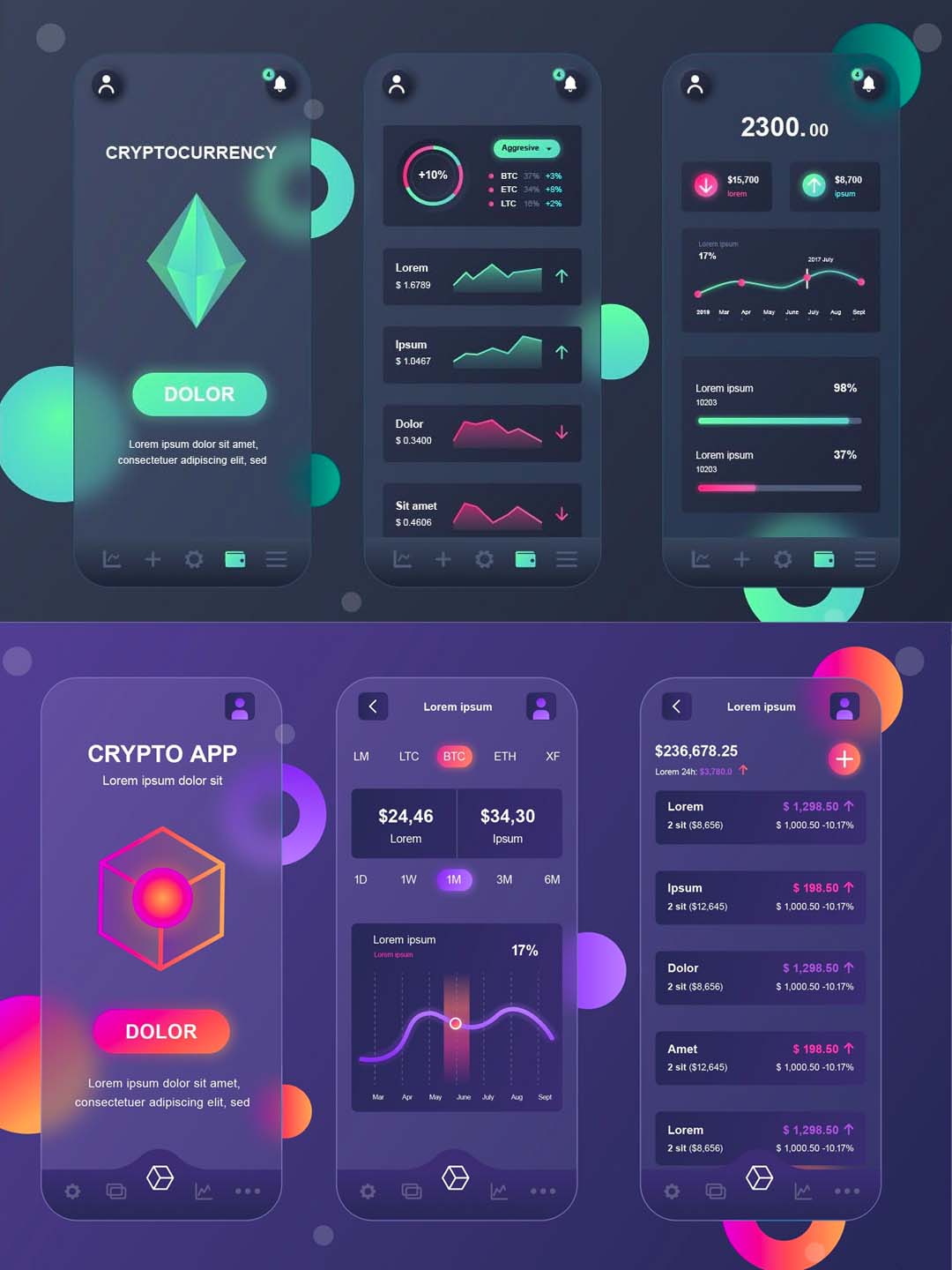 2022流行玻璃拟物风格金融数据额、加密货币APP UI资源素材AI源文件