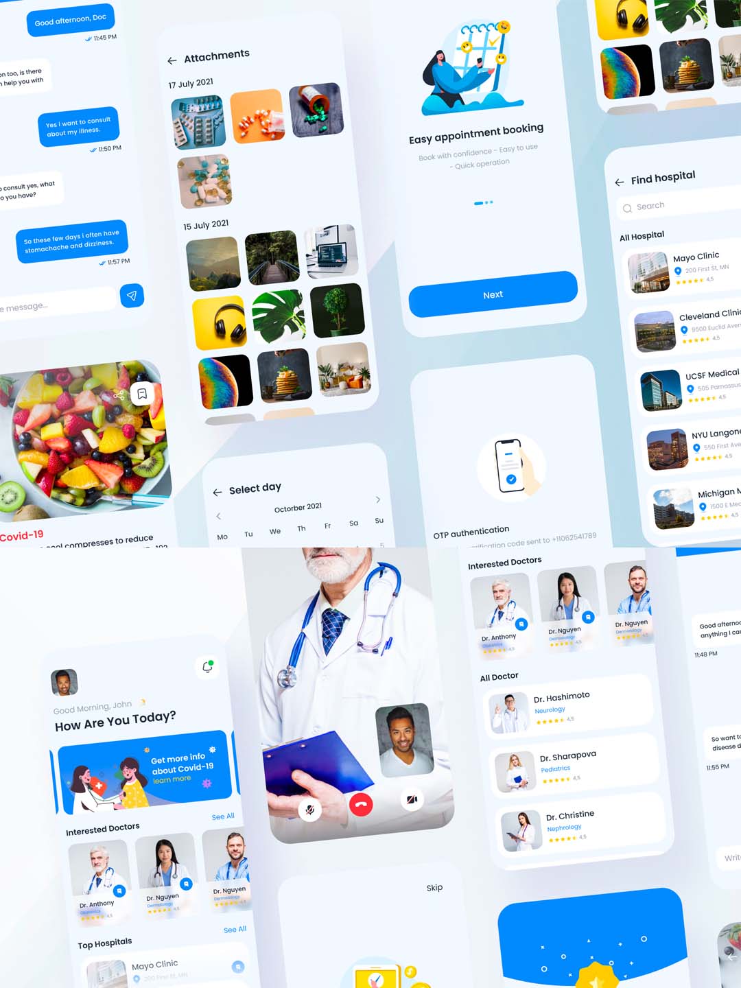 在线医疗UI设计、医院预约挂号app UI资源素材figma源文件