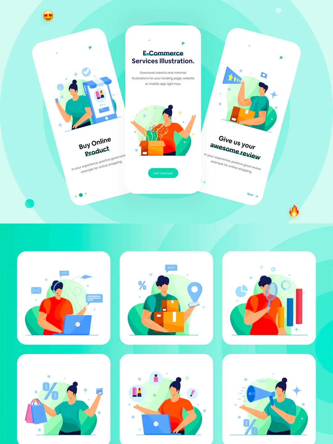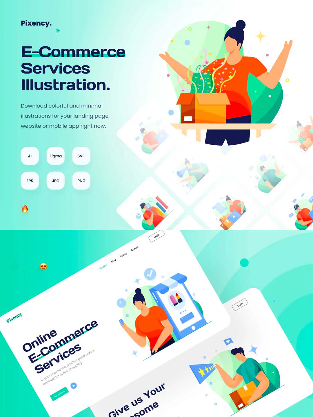 一套适用于电商场景、B端产品运营场景的矢量插画套件包含ai,eps,fig,svg源文件