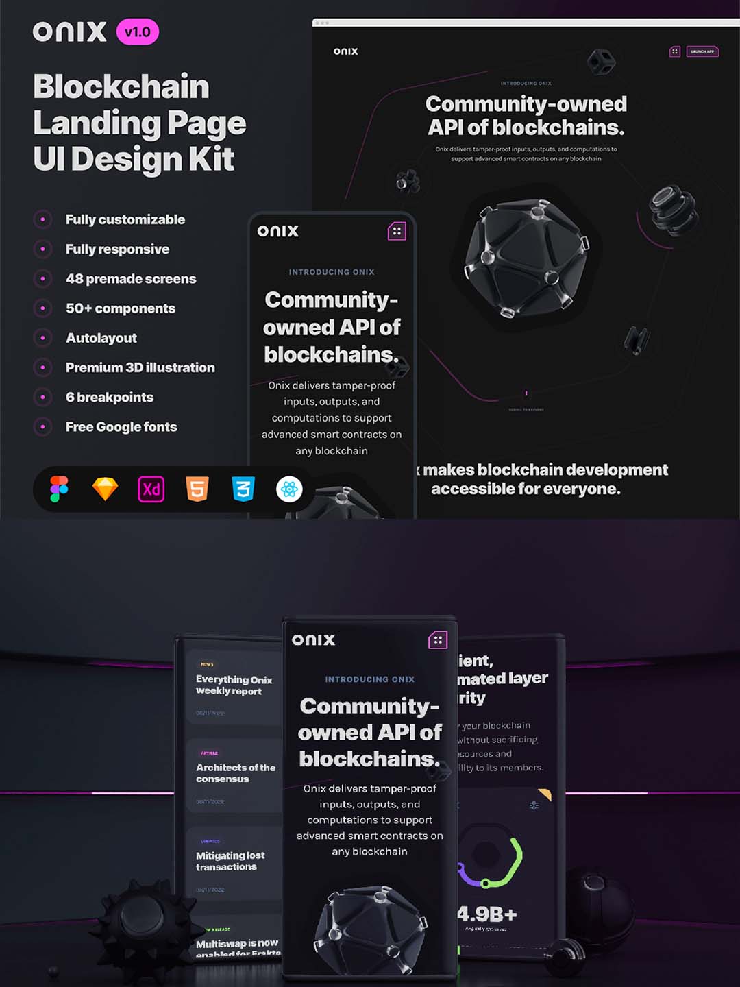 暗色风格区块链产品着陆页移动+WEB端UI资源素材(含xd,fig,sketch)
