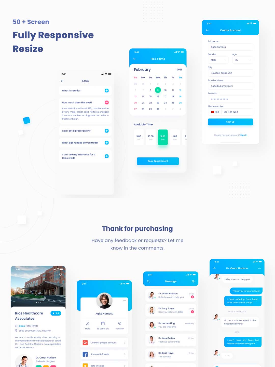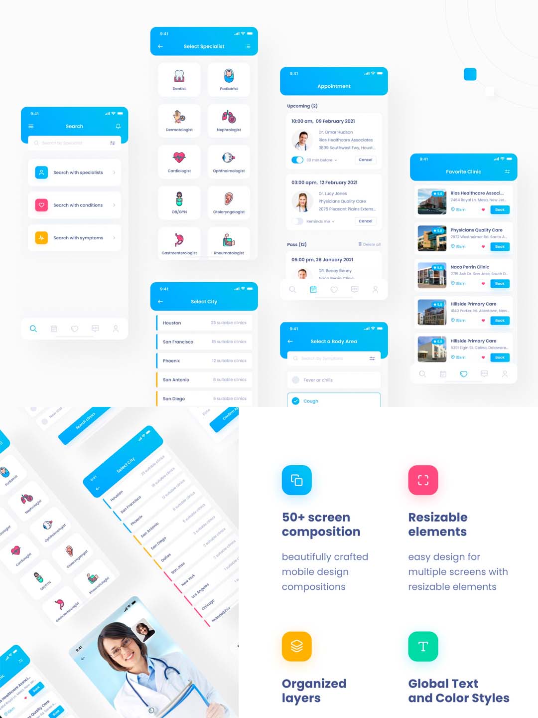 在线医疗APP UI资源,在线问诊应用UI设计figma源文件下载