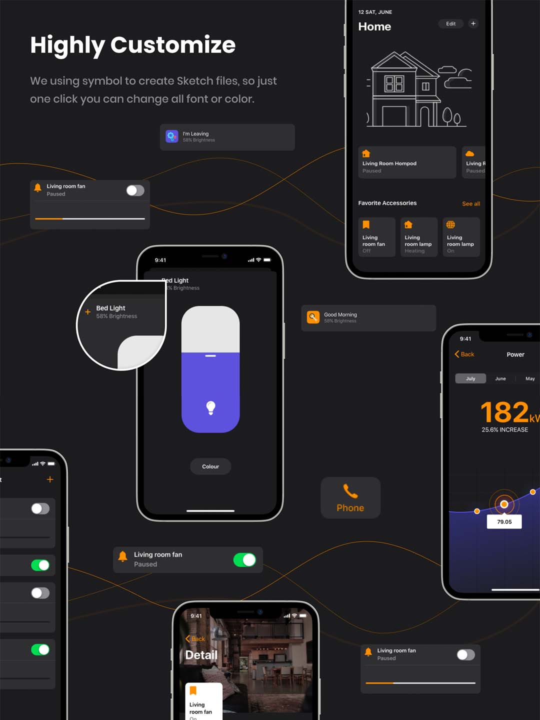 一套暗色风智能家居app UI设计应用UI kit 套装sketch/fig源文件
