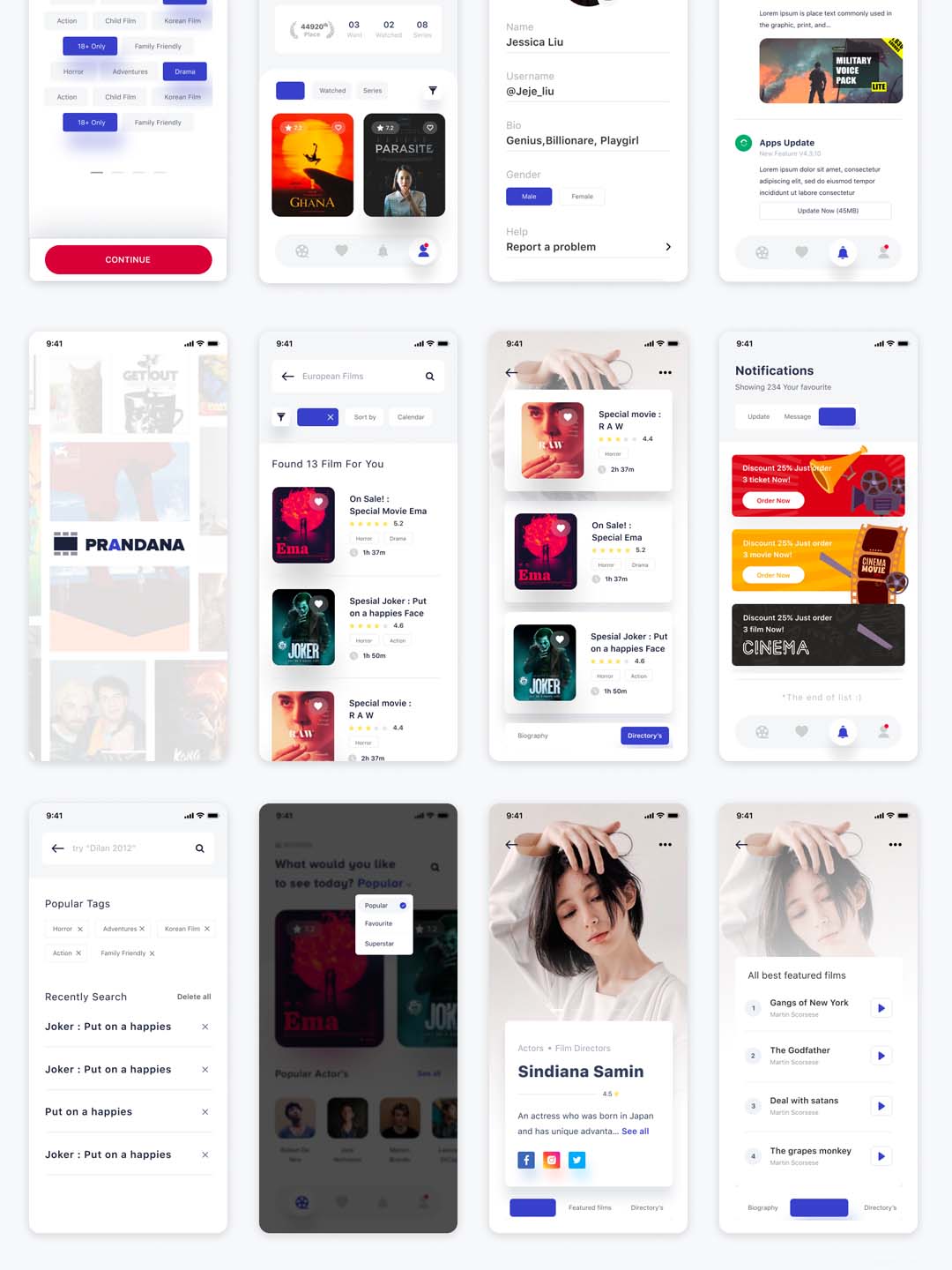 全新电影购票应用UI设计资源,票务管理app ui界面设计sketch源文件