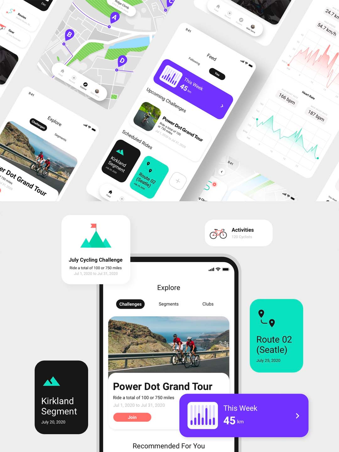 一套骑行app ui界面设计sketch源文件,自行车运动UI设计套件