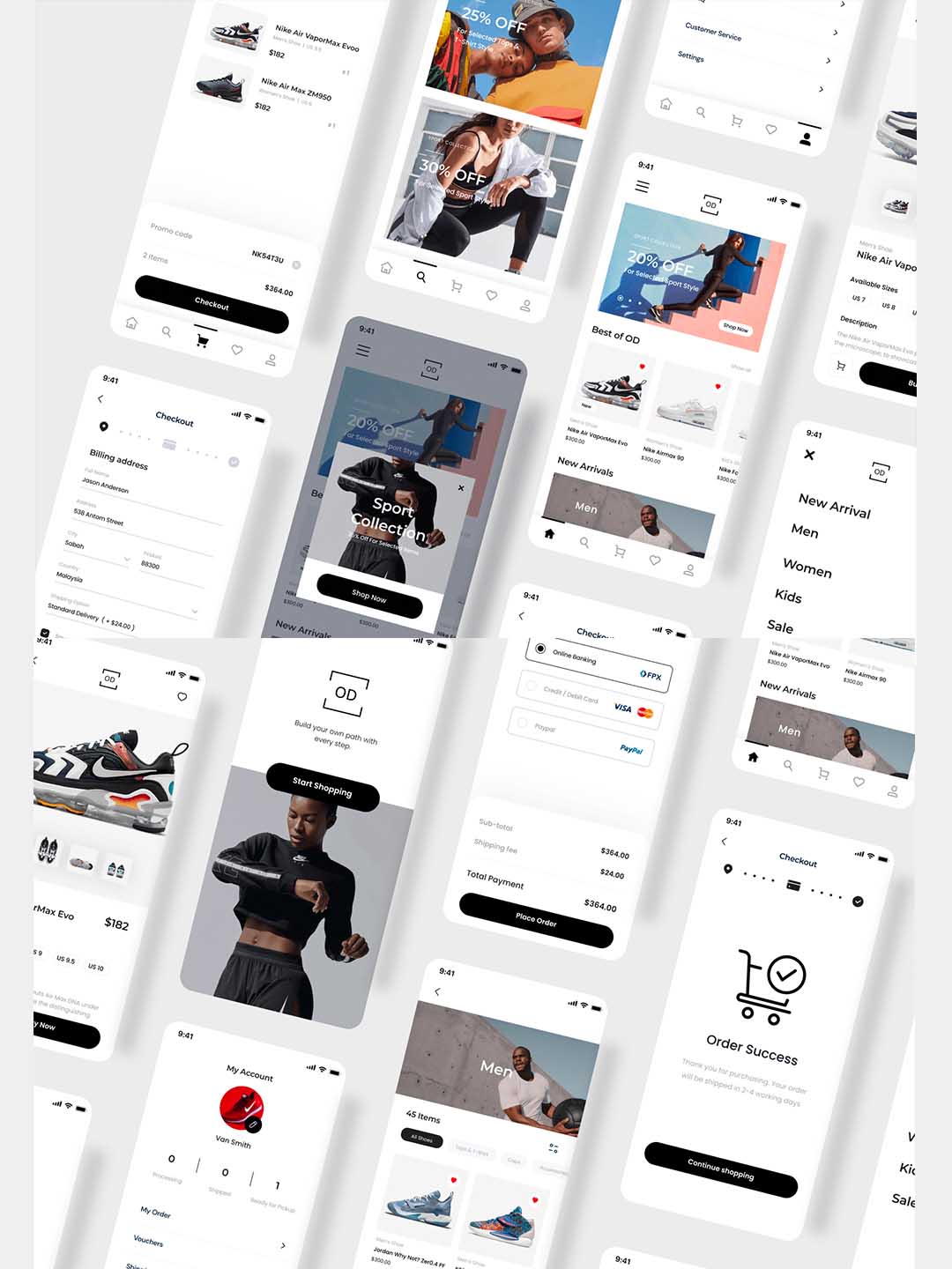 一款高端鞋子电商app UI界面设计套件,运动鞋电商UI kit源文件