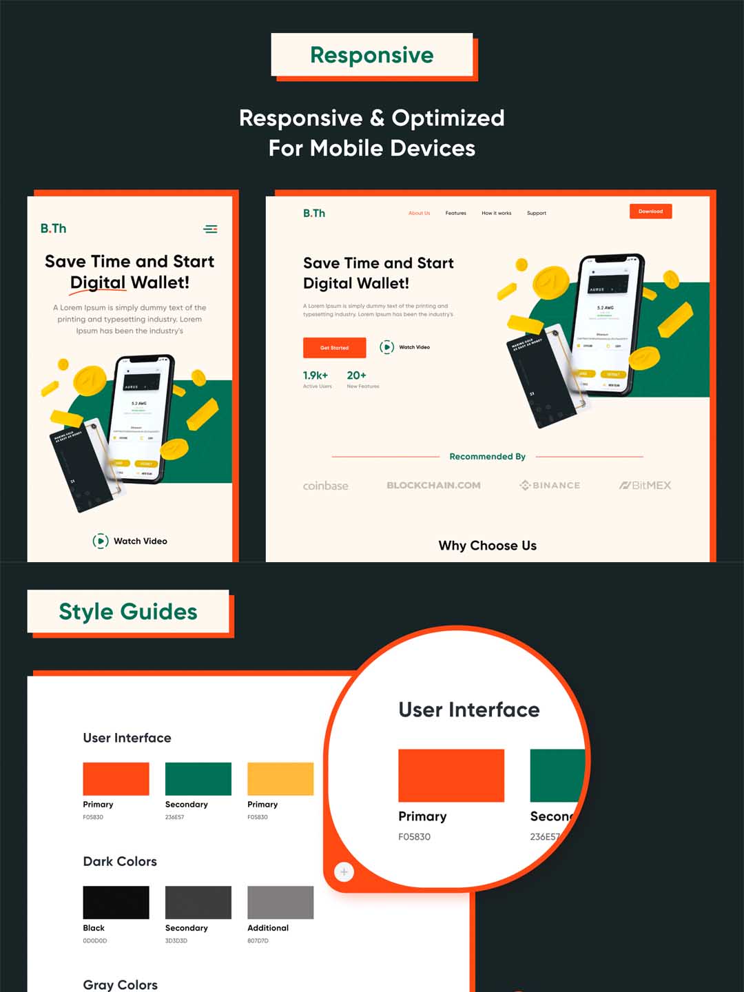 Bth 是一个智能加密钱包登陆页面模板,Bth 采用最新技术制作,包含 Figma 文件。