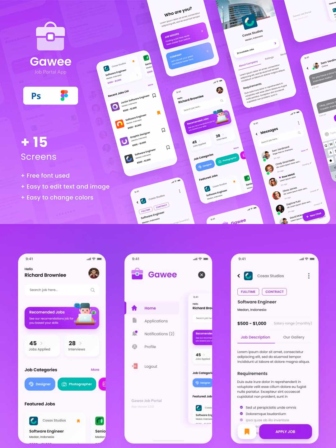 职场社交app ui源文件,职场设计应用UI界面psd源文件