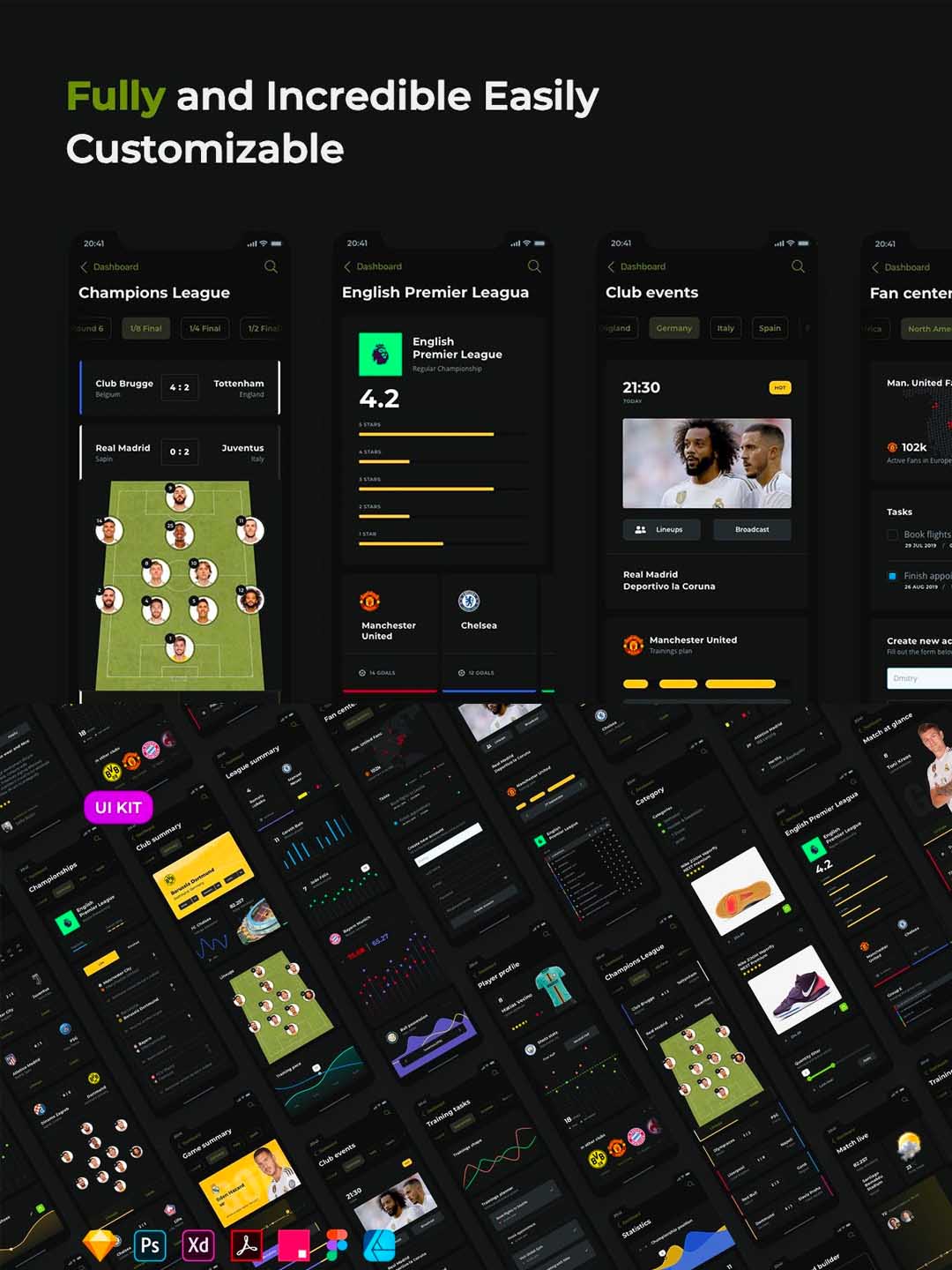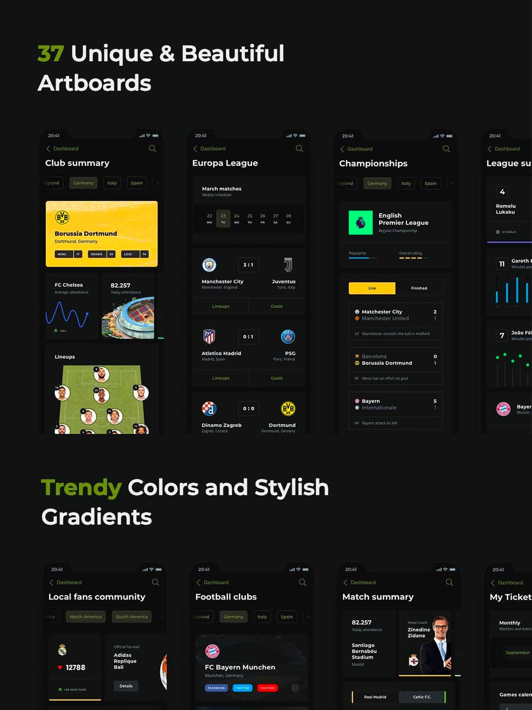 足球赛事UI界面设计源文件、体育竞技app UI设计资源素材sketch源文件