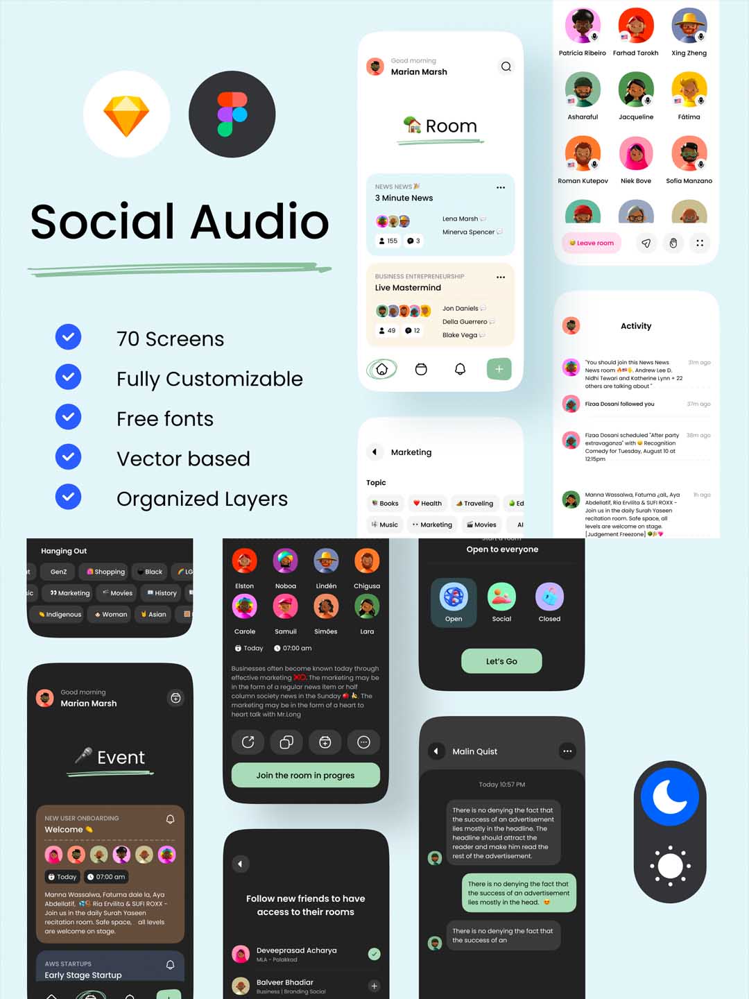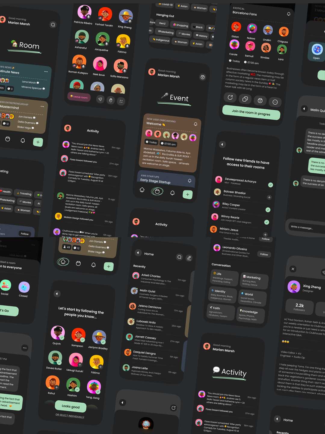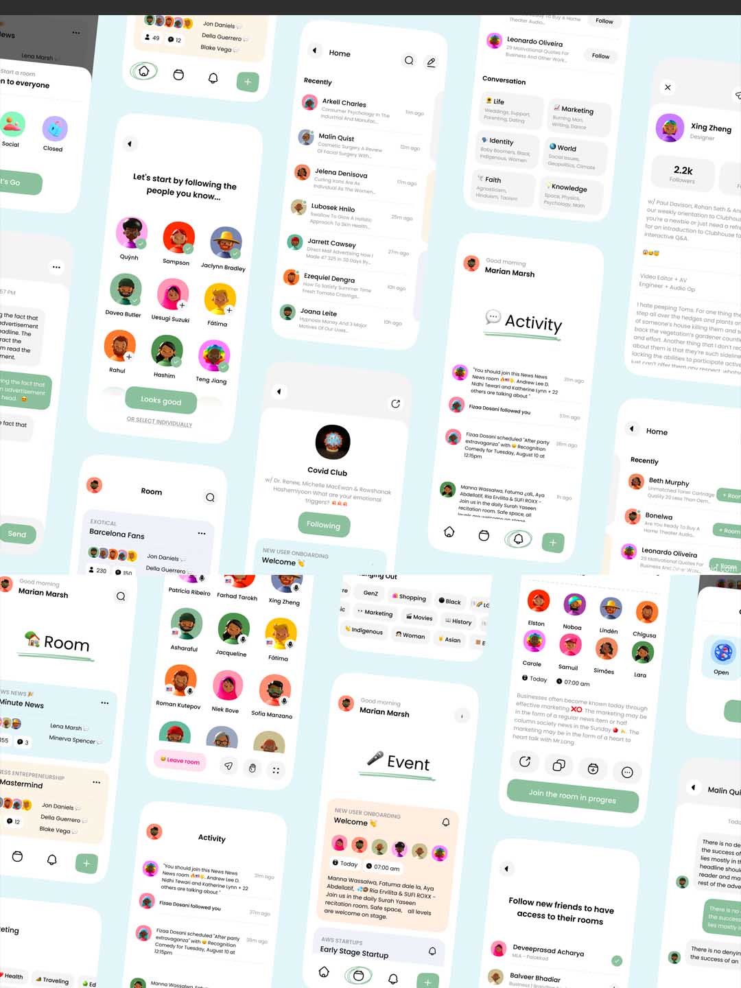 语音社交app ui源文件,年轻人语聊社交UI设计仿clubhouse ui界面源文件下载