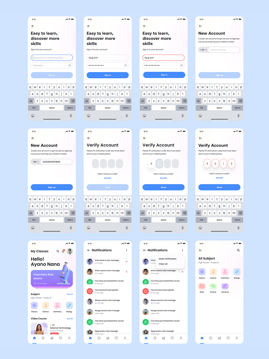 全新职业教育在线学习APP UI设计源文件,在线教育UI界面设计资源下载