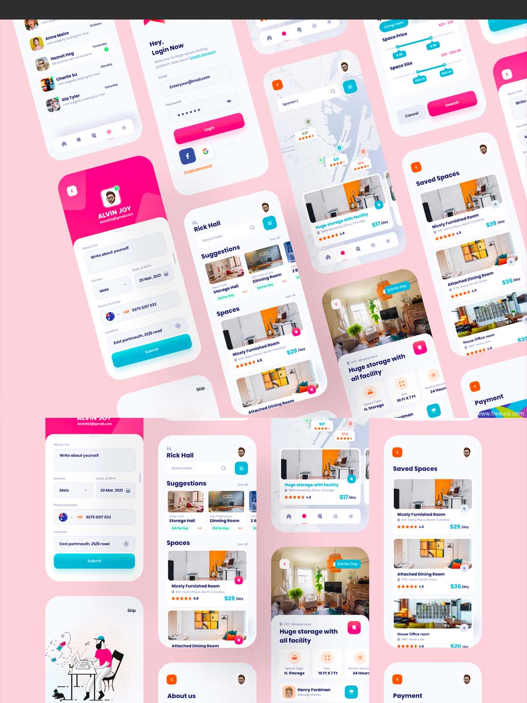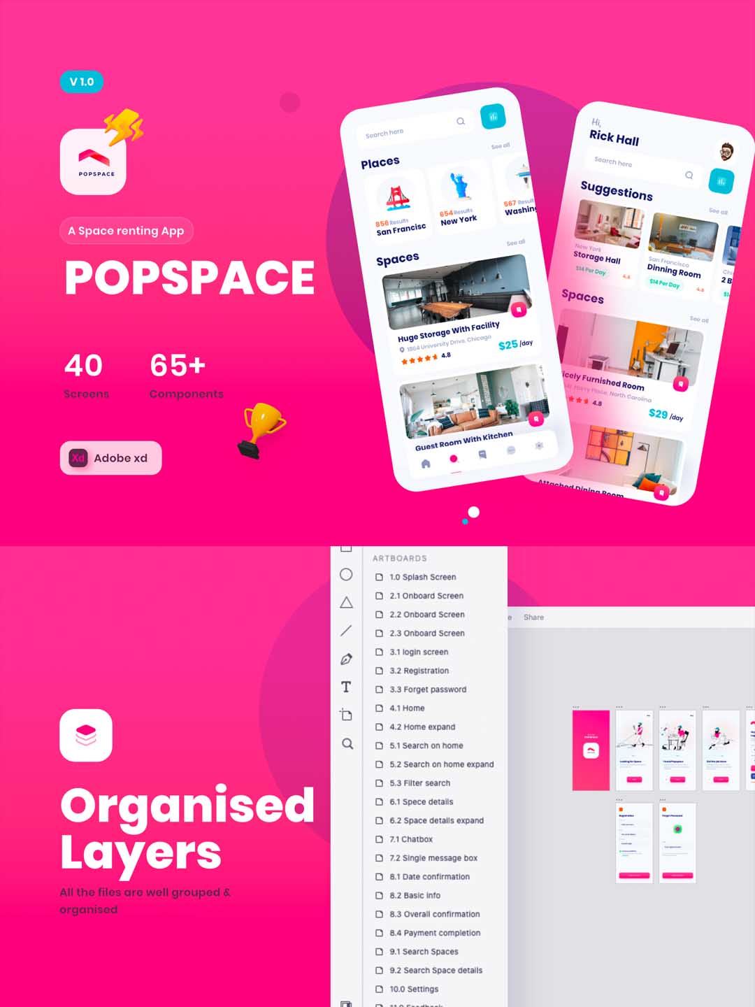 40页办公场地租赁,房屋租赁app UI源文件素材下载xd源文件