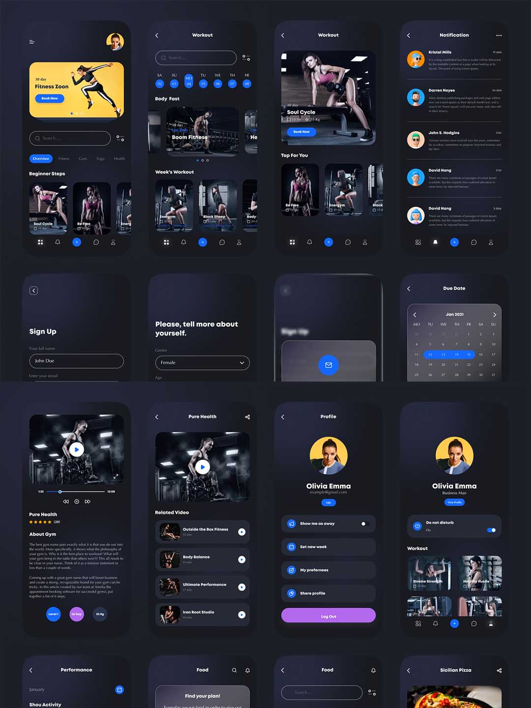 一套酷黑健身产品UI设计资源,健身app UI资源素材,健身房应用UI界面设计源文件