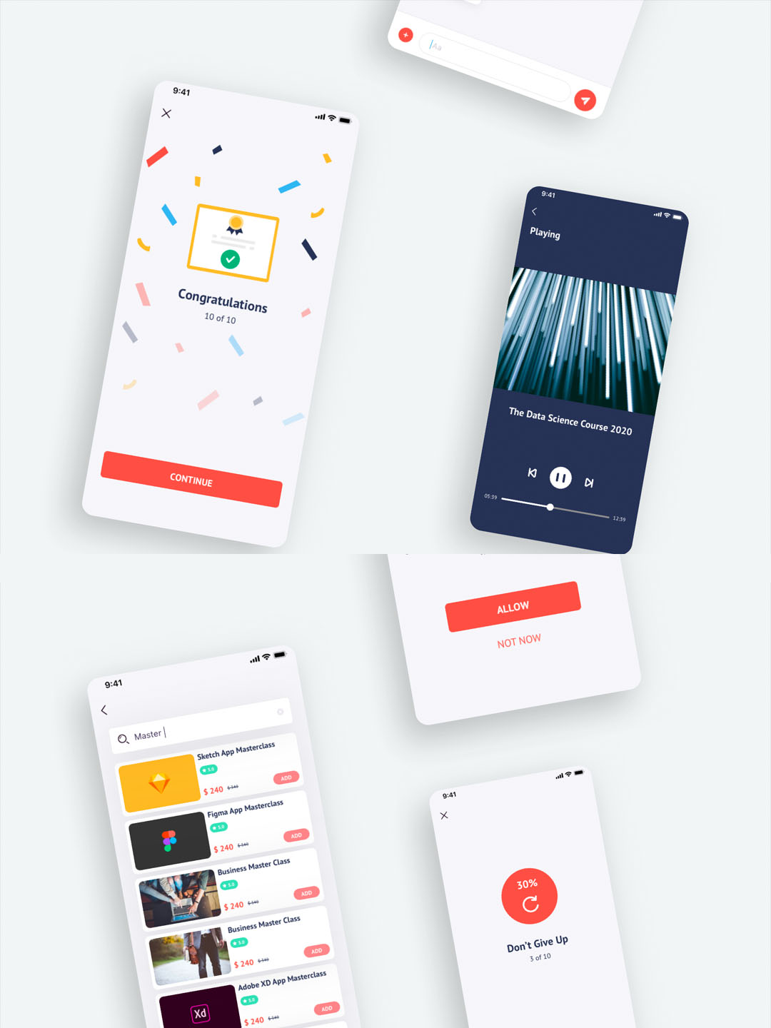 设计类在线教育app UIkit源文件,在线课程APP UI资源,职业教育UI界面设计素材sketch、xd、fig源文件