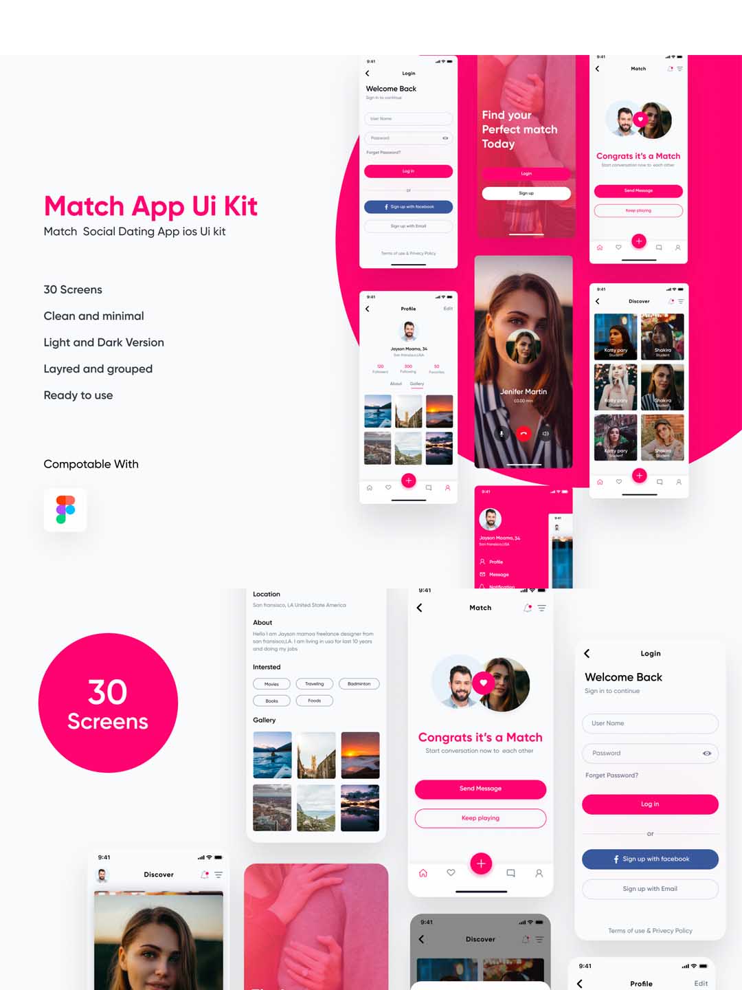 30页社交app ui源文件下载,陌生人约会app ui资源素材下载