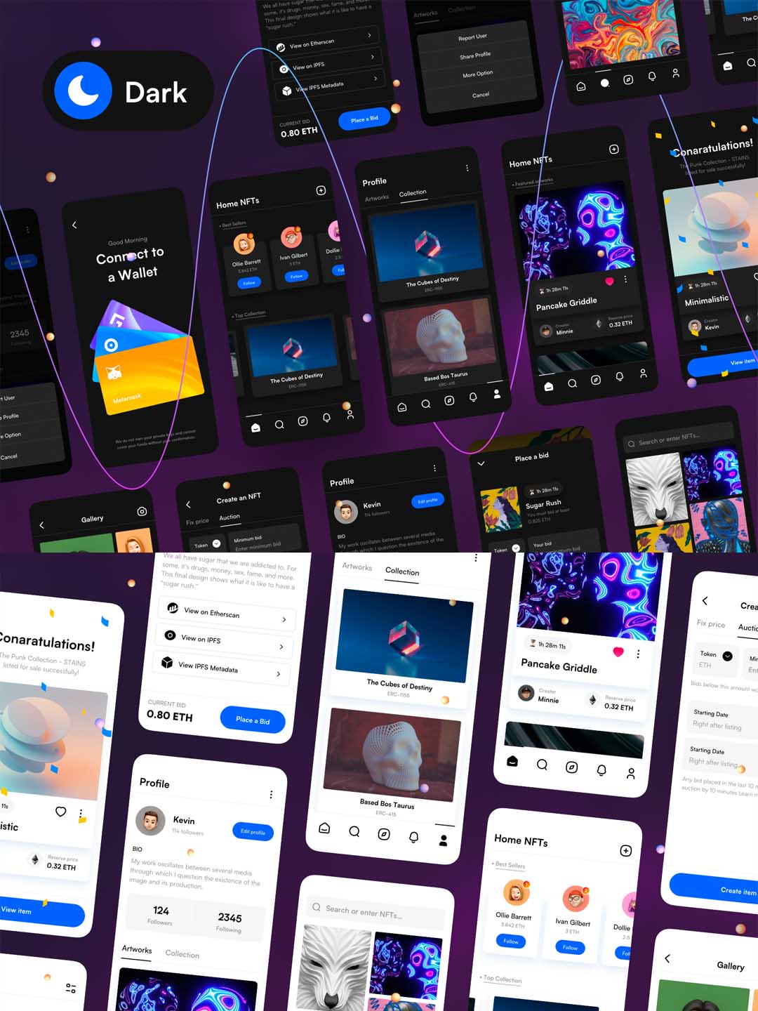 一套NFT交易平台APP ui源文件下载,NFT市场APP ui资源下载,区块链交易平台UI素材下载