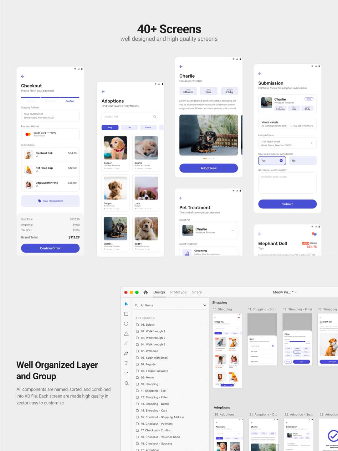 一套宠物社区+宠物电商app ui源文件下载,宠物app ui资源下载xd源文件