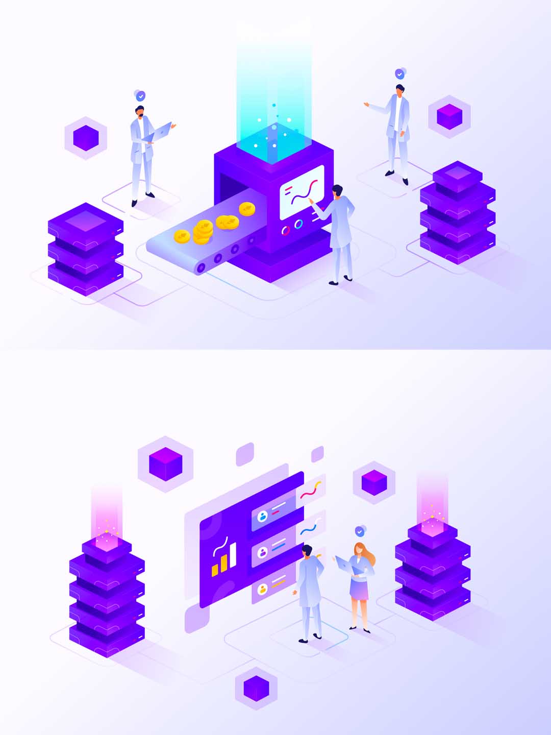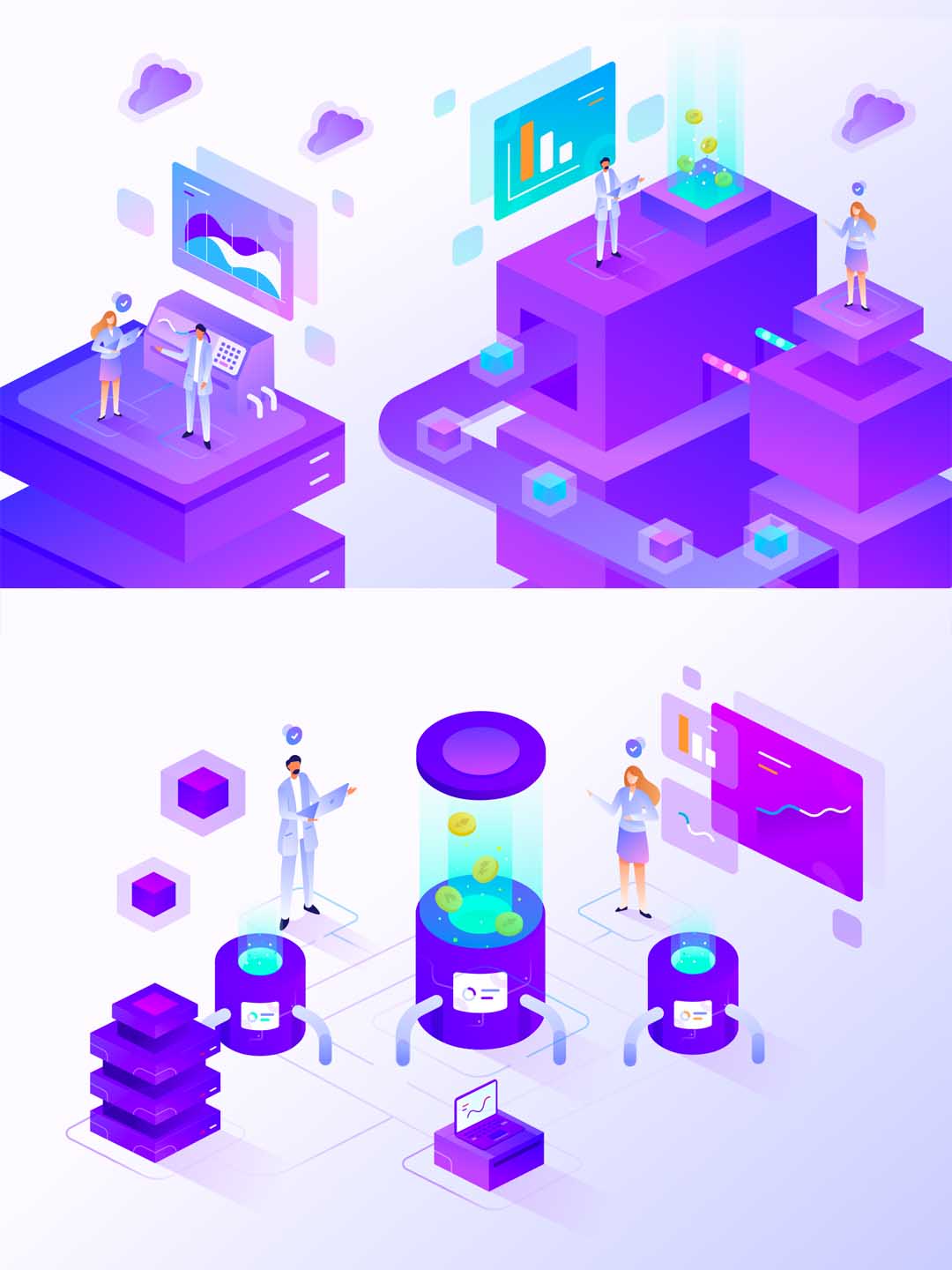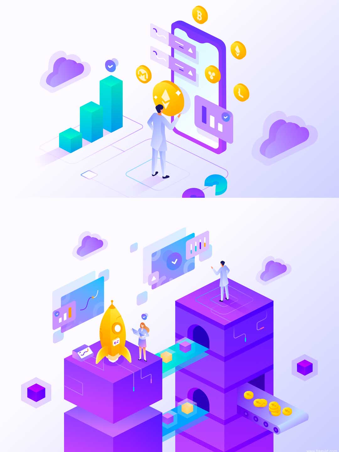 一套2.5D矢量插画运营素材下载,金融方向2.5D插画ai源文件、sketch源文件