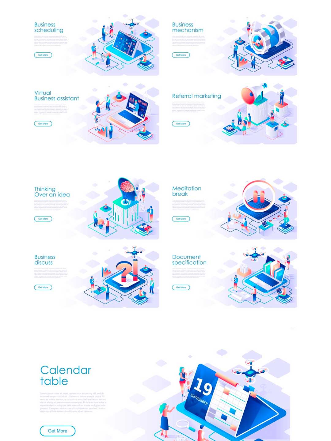 2.5D商务风插画下载,透视状态引导页插画ai源文件