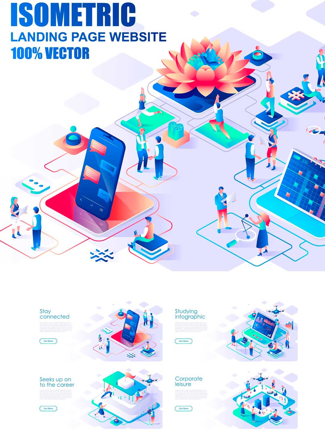 25个2.5D风格场景插画ai源文件,一套矢量2.5d插画原文件下载