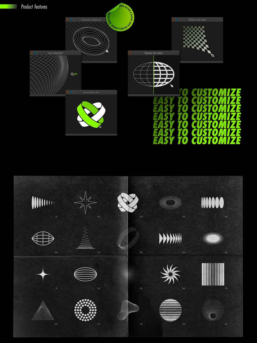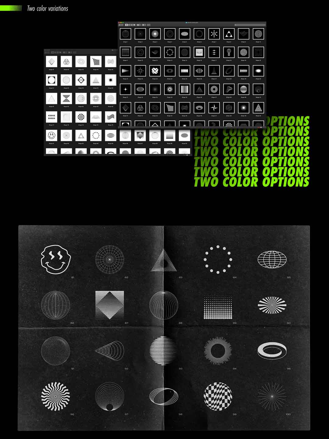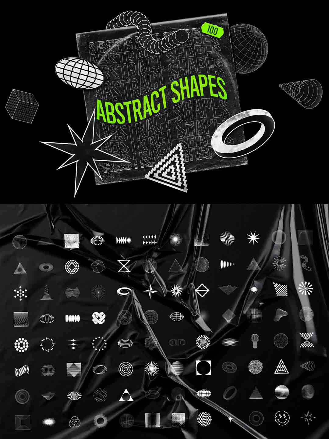 100个酸性设计风格矢量素材源文件,抽象视觉包装psd源文件,酸性设计风矢量视觉包装元素