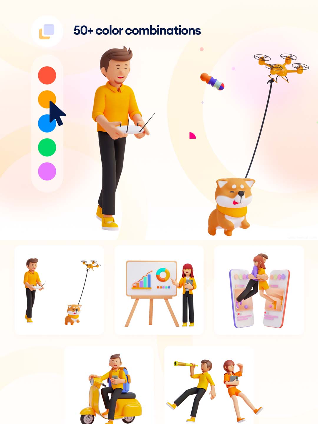3D趣味插画资源下载,卡通风3D插画素材,3D运营资源插画素材下载