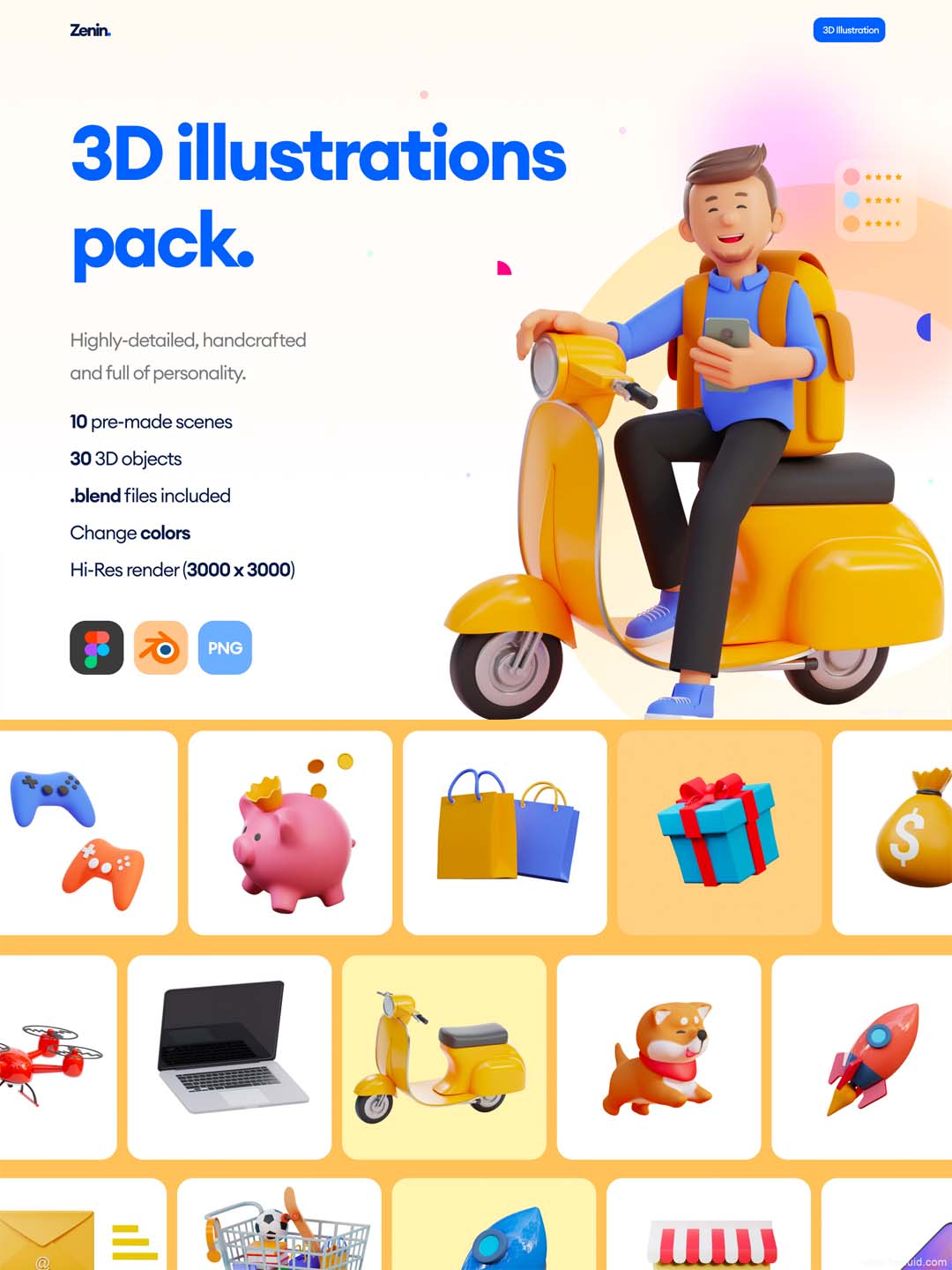 Figma 的 3D 插图包 优质3D插画合集,纯手工制作,个性十足。