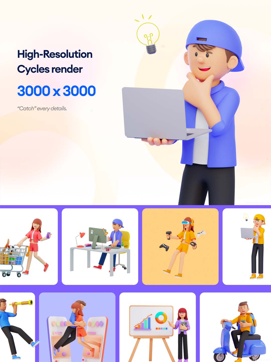 元宇宙3D角色Blender源文件 |VR人物png素材
