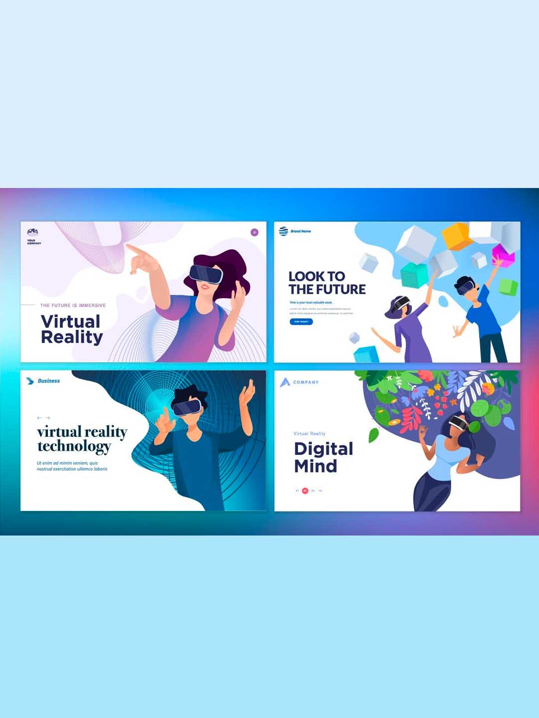 VR场景展示矢量插画ai源文件下载,虚拟现实运营插画素材下载