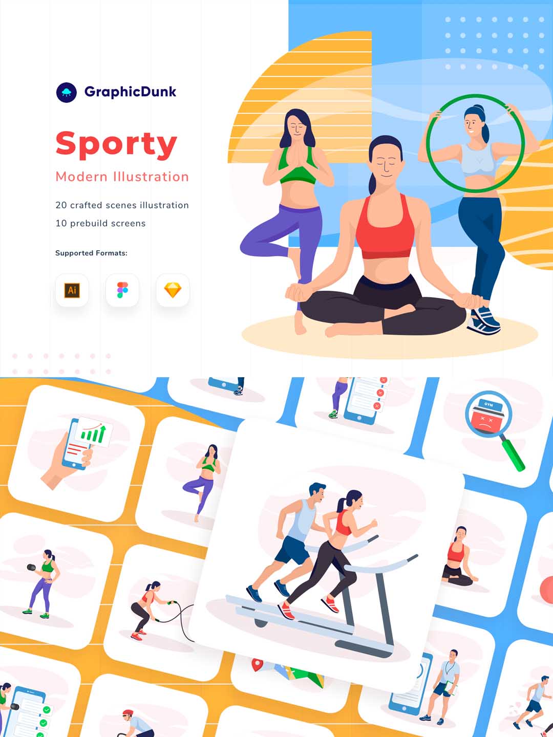 一套运动健身运营插画套装ai、sketch源文件下载,20张现代体育运动矢量插画集下载