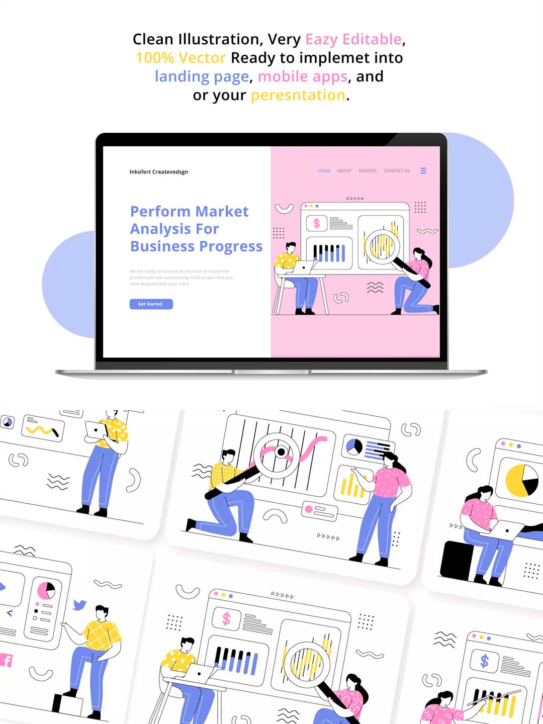 一套矢量线条流行风运营插画ai源文件下载,UI插画资源下载figma、xd源文件