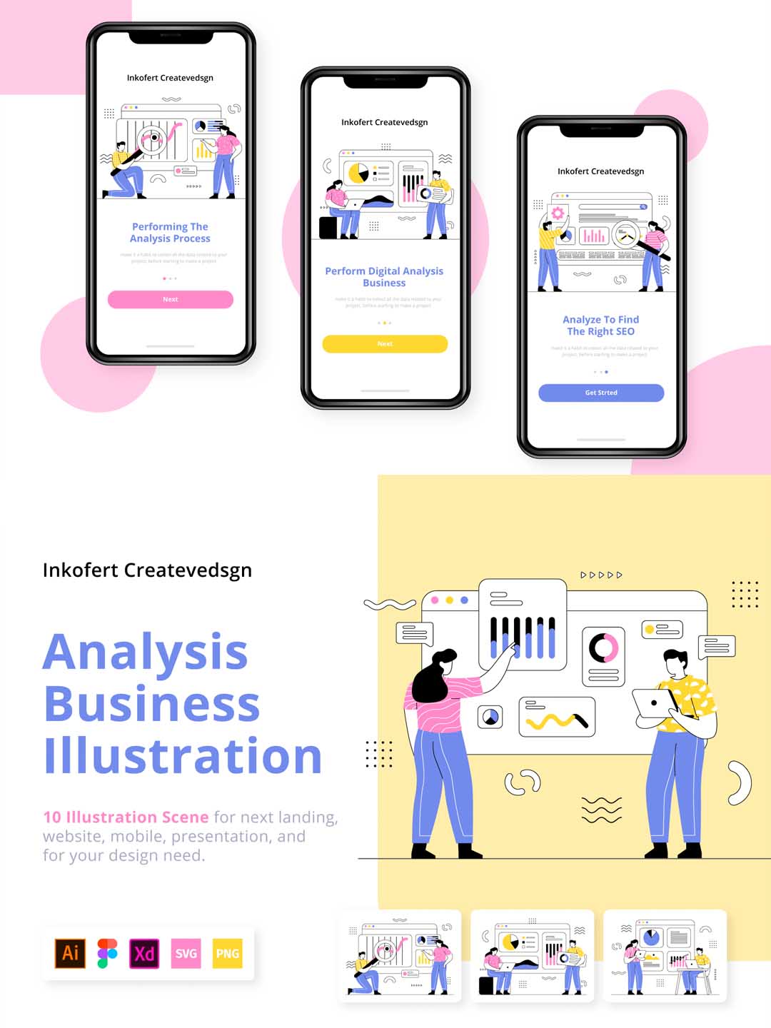一组在涵盖线教育插画、金融插画、医疗插画类等商务场景运营插画AI源文件下载