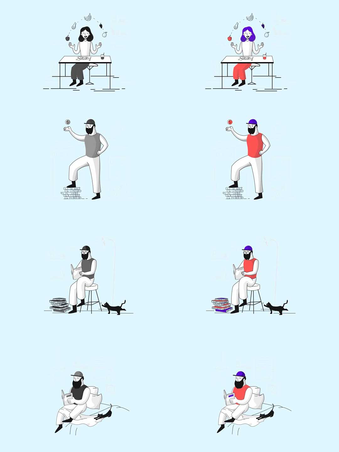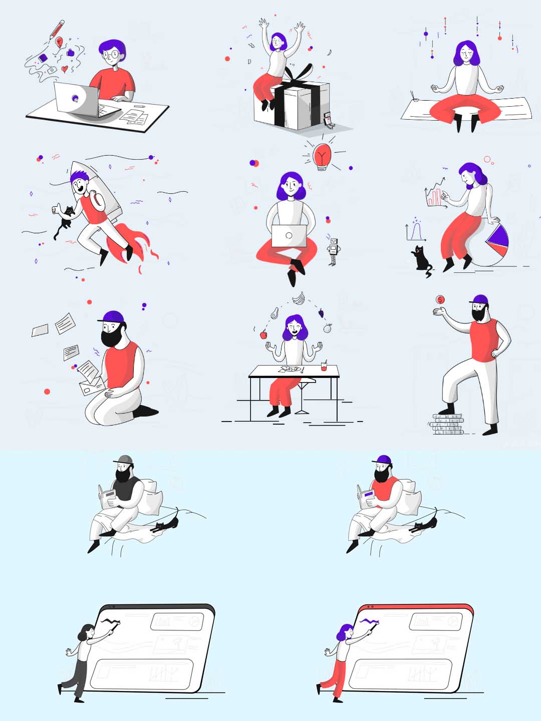 一套有特色的矢量线条风格插画运营套件ai源文件,矢量运营插画适用于电商场景的矢量插画UI素材