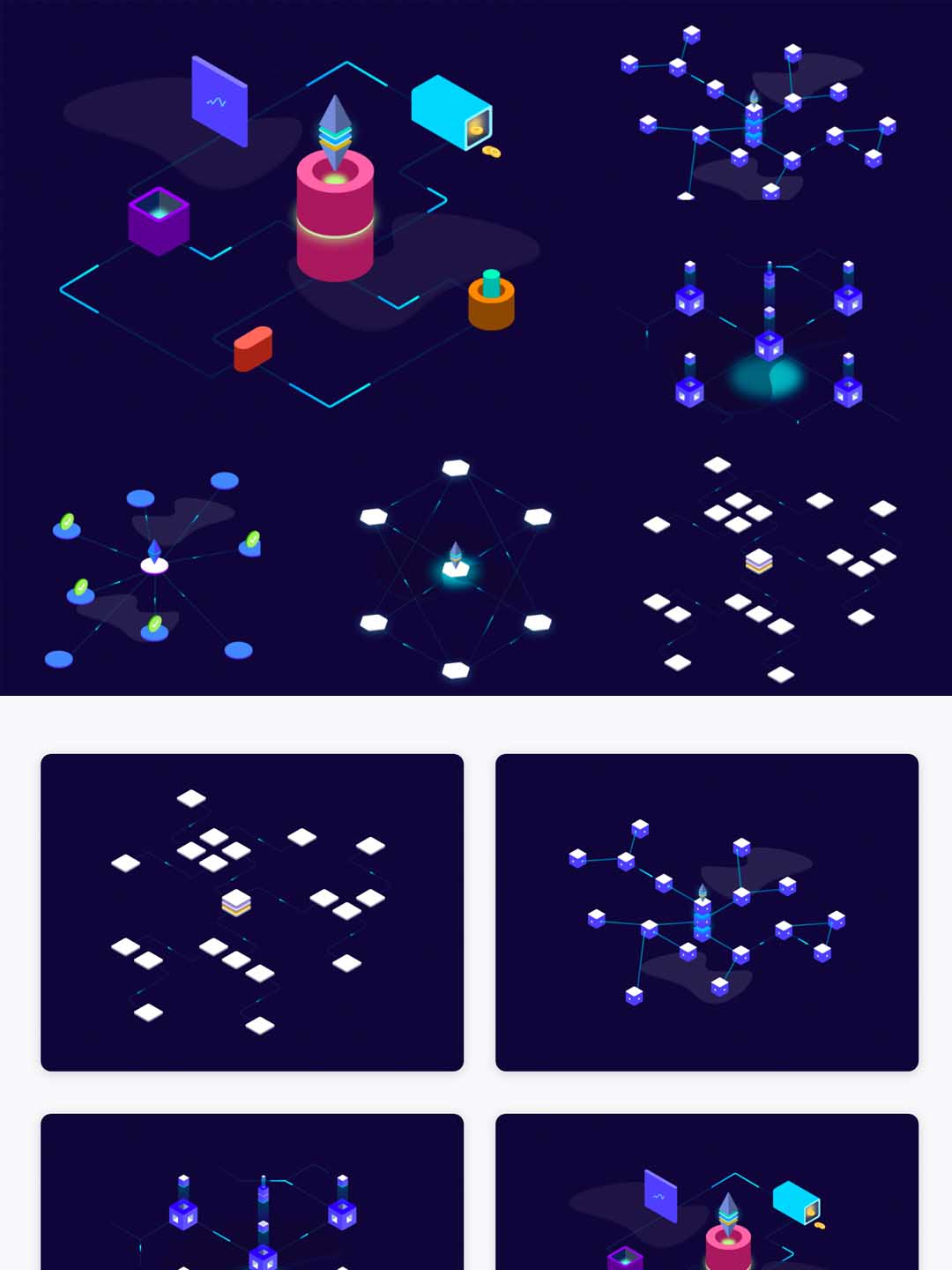 2.5D科技元素插画源文件,2.5D区块链插画源文件,2.5D云服务UI素材下载,sketch源文件,ai源文件