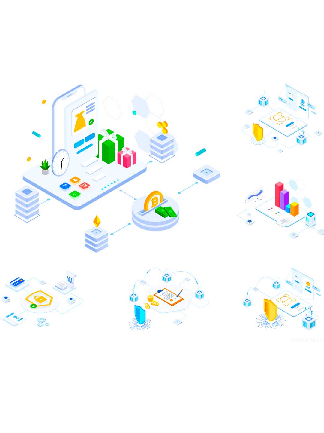 一组科技风2.5D插画,现代扁平设计风格现代信息科技主题等距概念插画Ai源文件