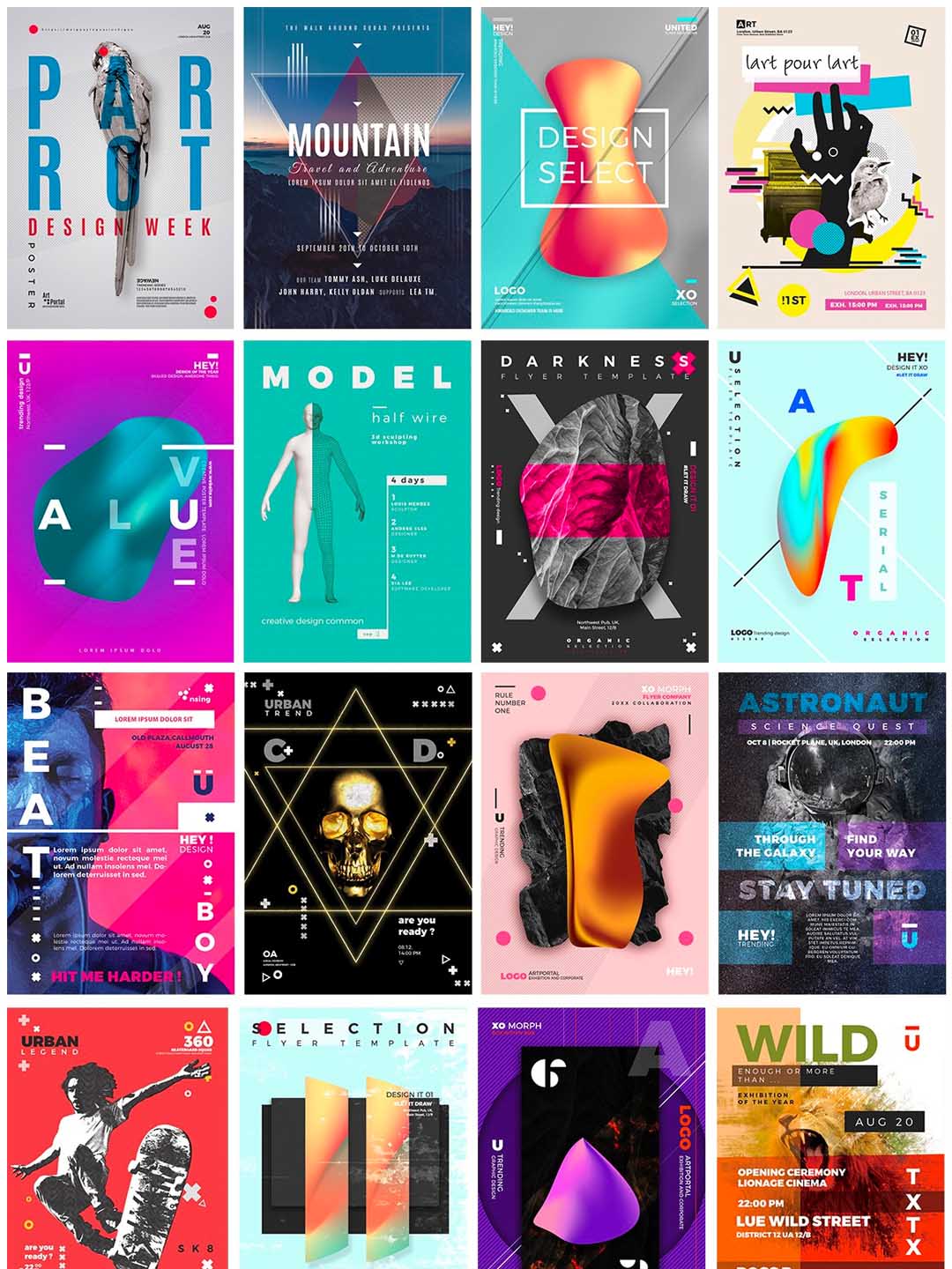 20款未来梦幻抽象科技感海报PSD源文件附带英文字体下载